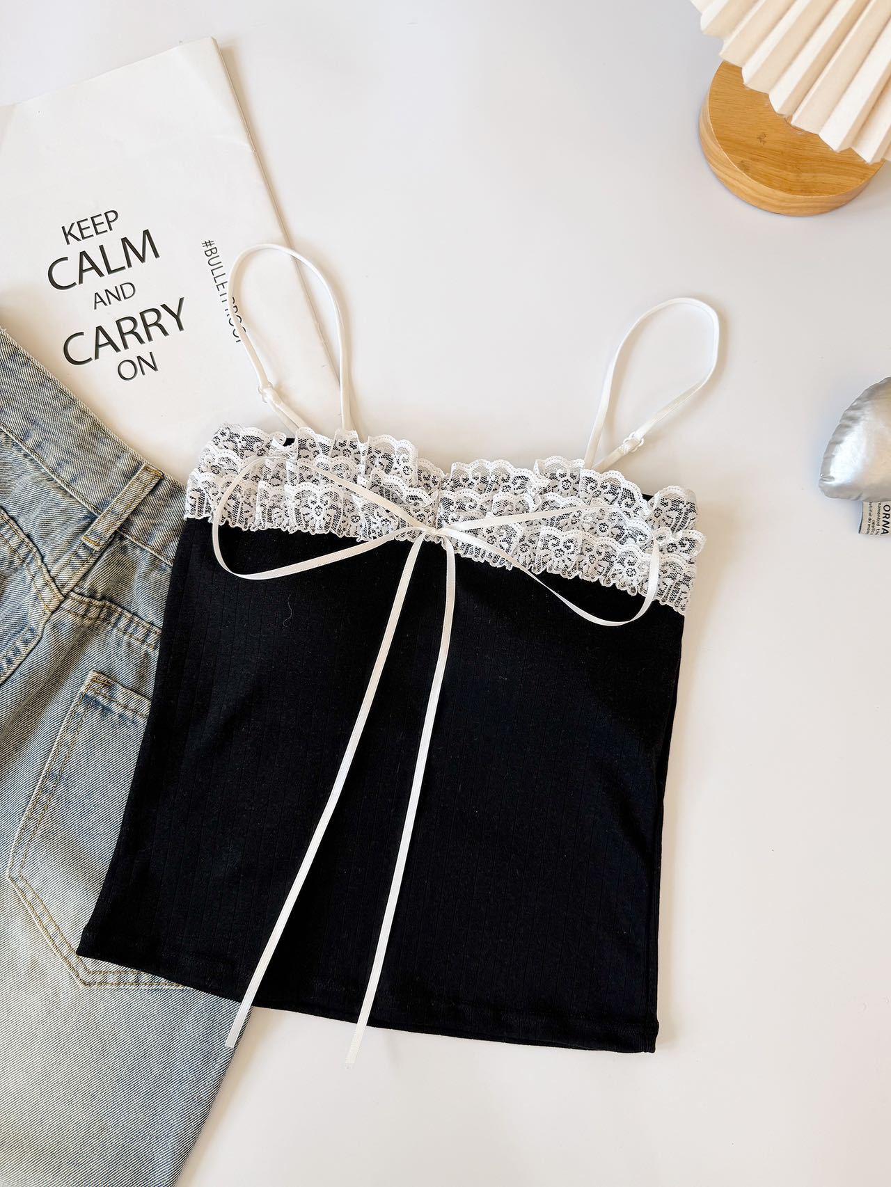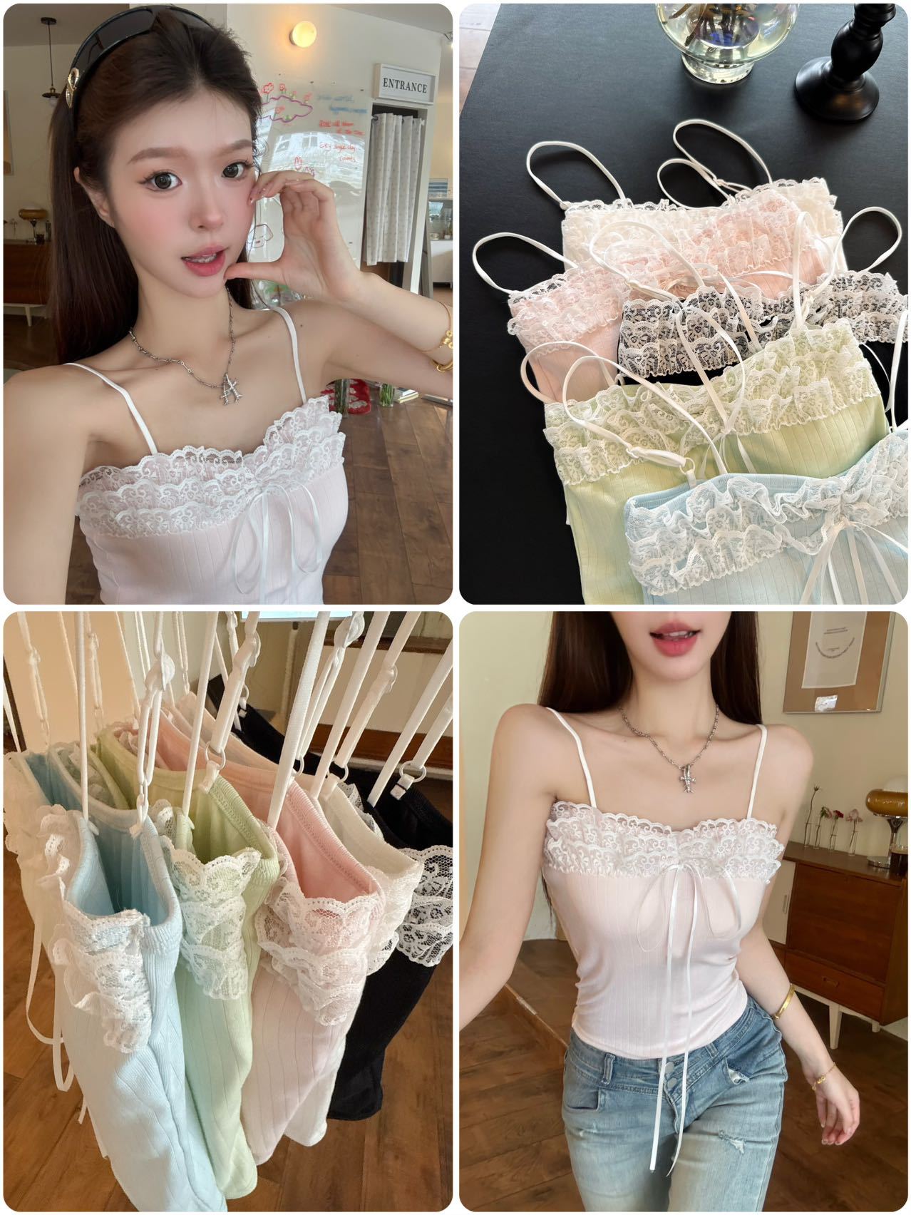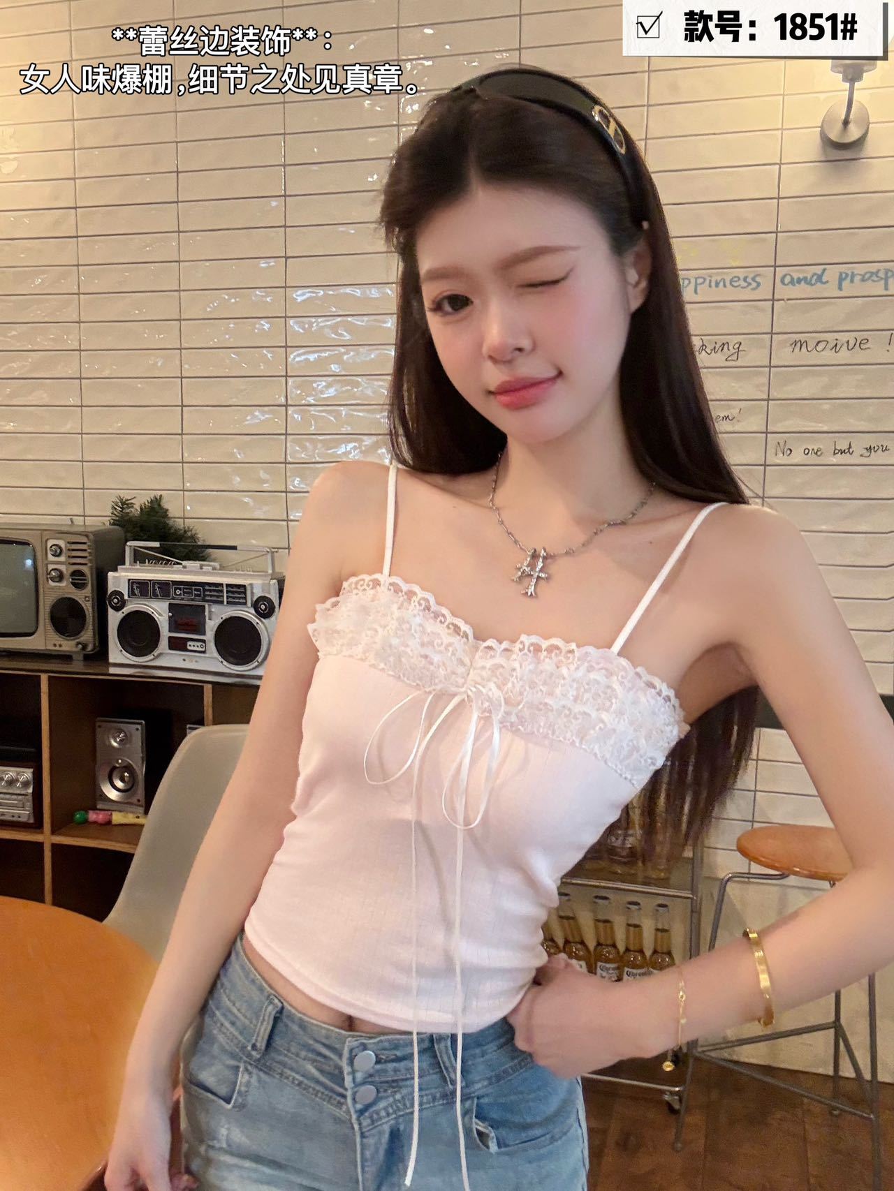Pure Desire Hot Girl 레이스 조끼 서스펜더 여성 여름 새로운 디자인 레이스 업 바닥 슬리밍 탑