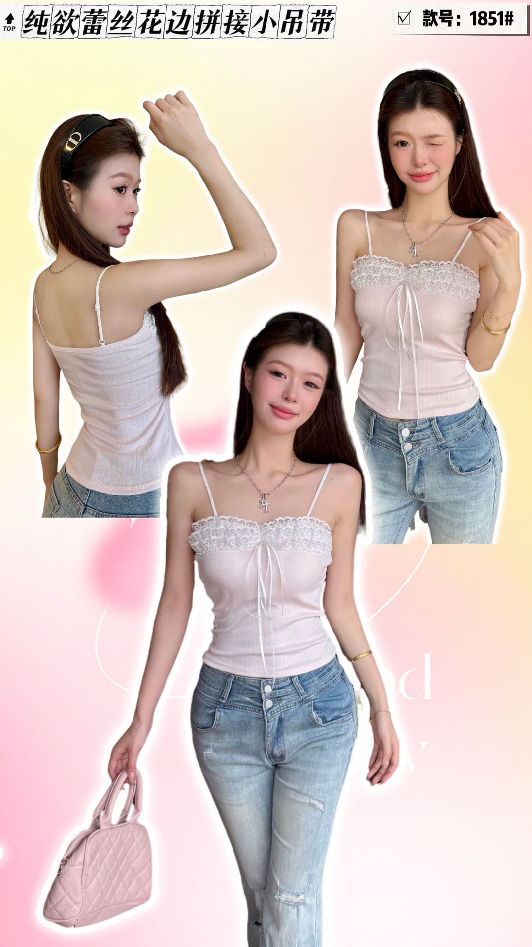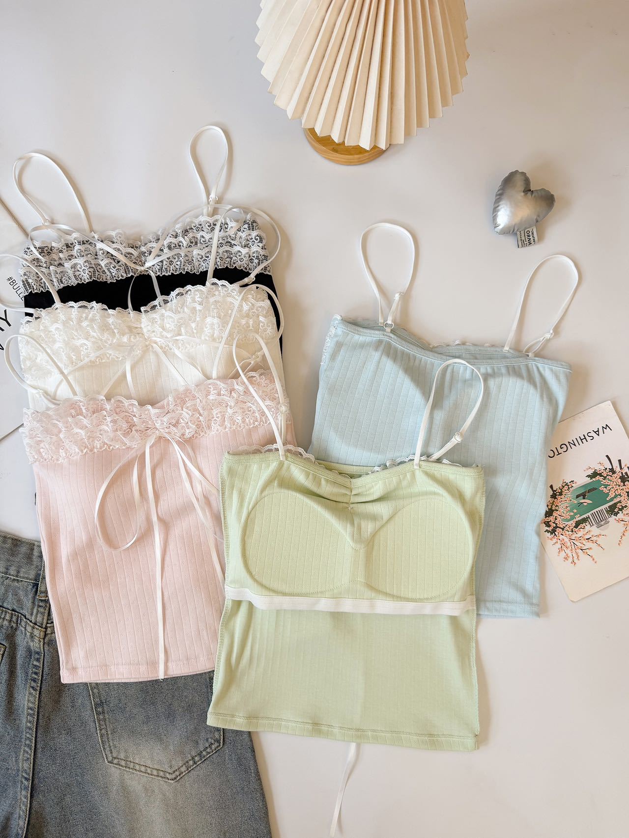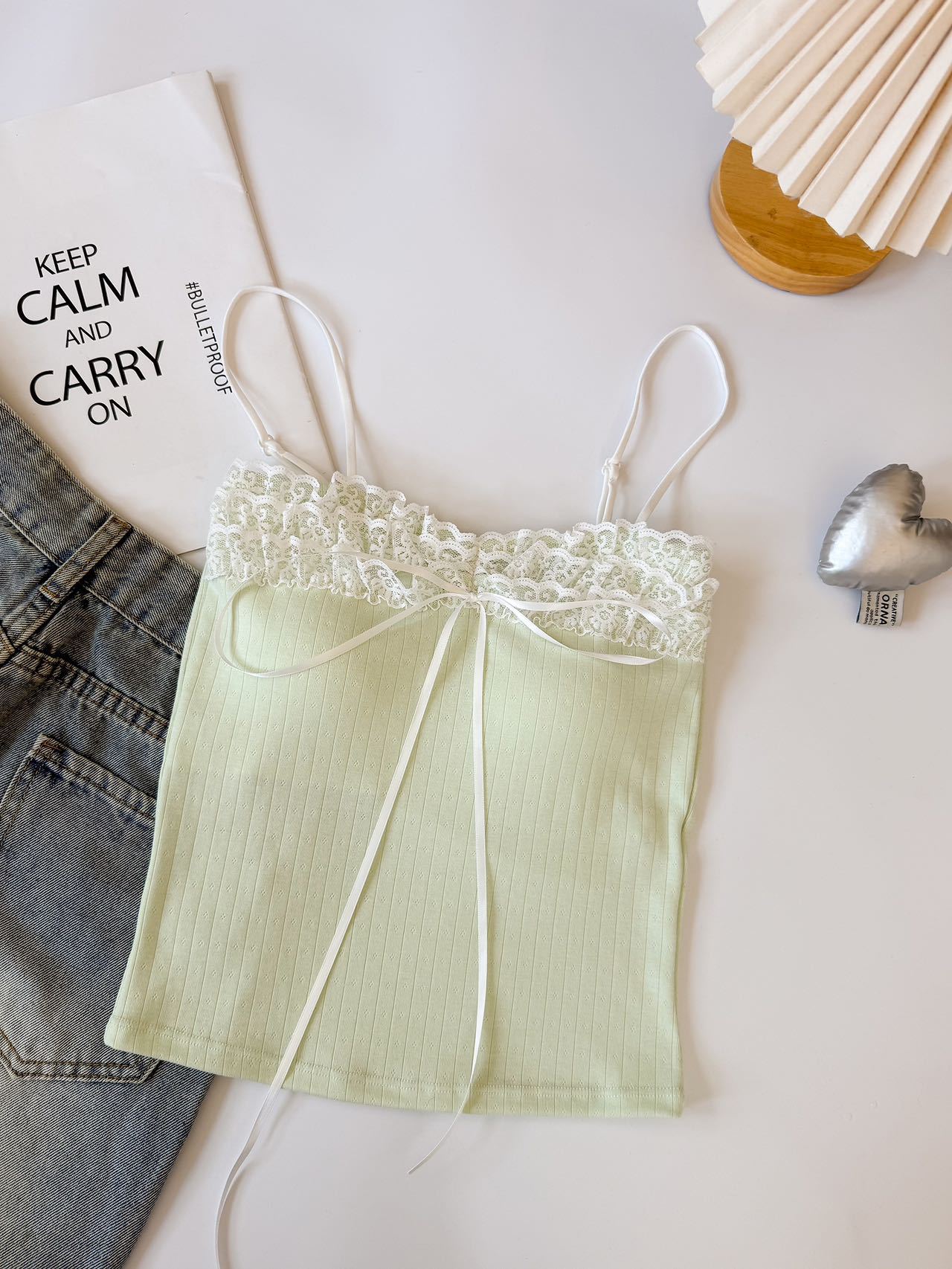 Pure Desire Hot Girl 레이스 조끼 서스펜더 여성 여름 새로운 디자인 레이스 업 바닥 슬리밍 탑