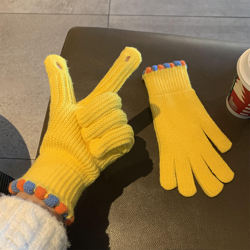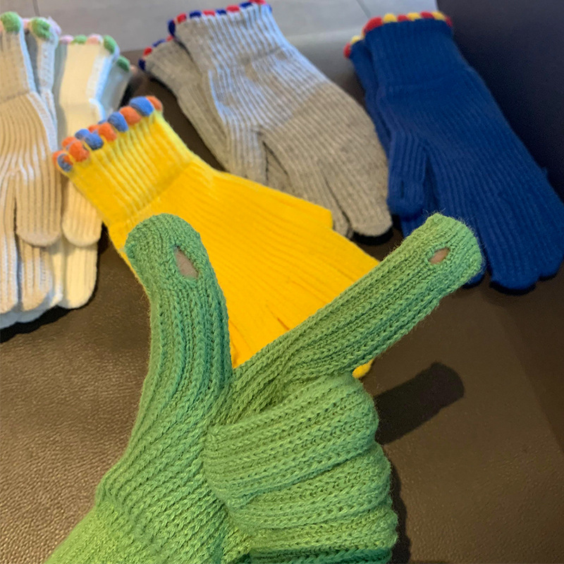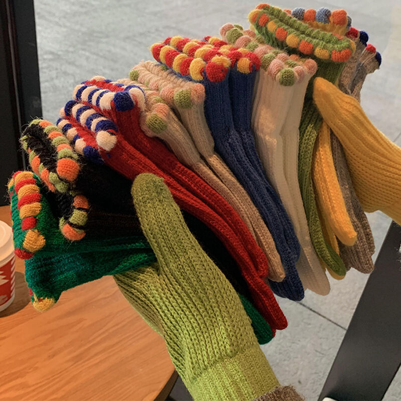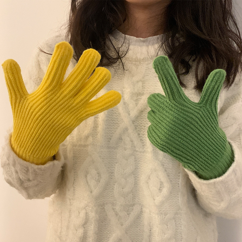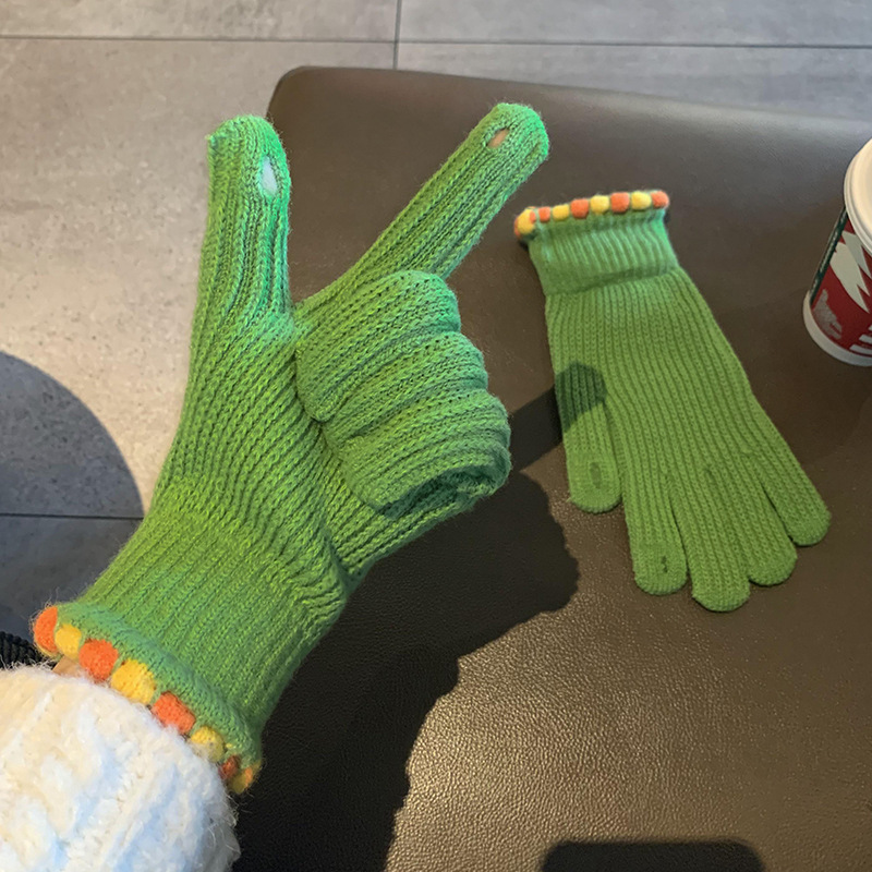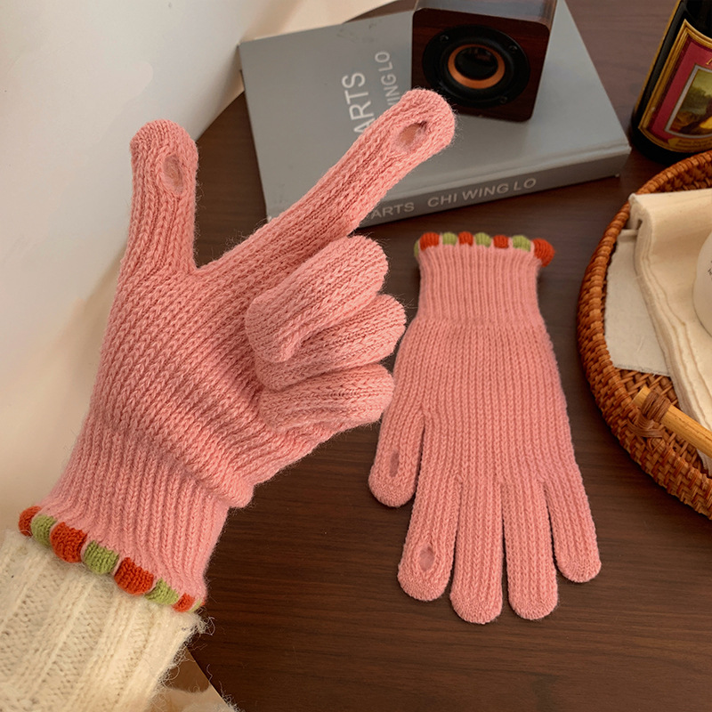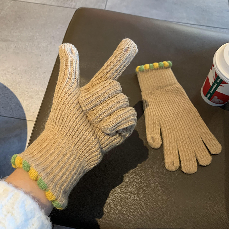 Ins Sugar Bean 한국 양모 니트 장갑 겨울 여성 두꺼운 터치 스크린 손가락 따뜻하게 유지 사이클링스토어 가기