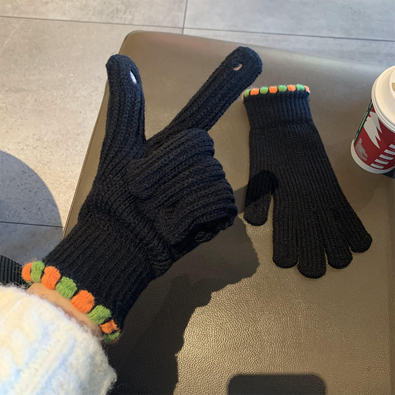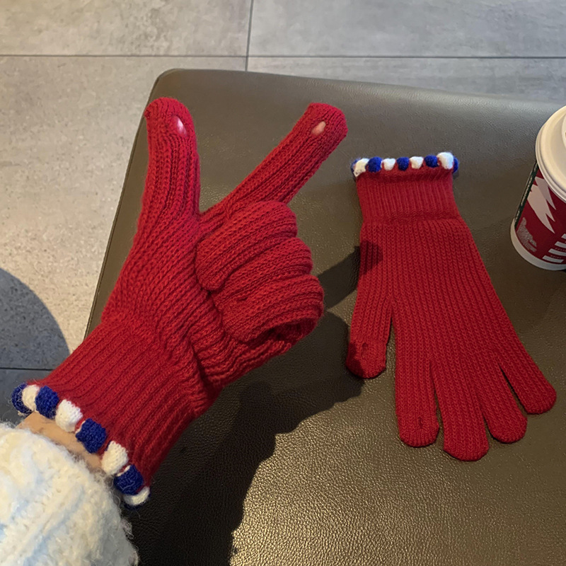 Ins Sugar Bean 한국 양모 니트 장갑 겨울 여성 두꺼운 터치 스크린 손가락 따뜻하게 유지 사이클링
