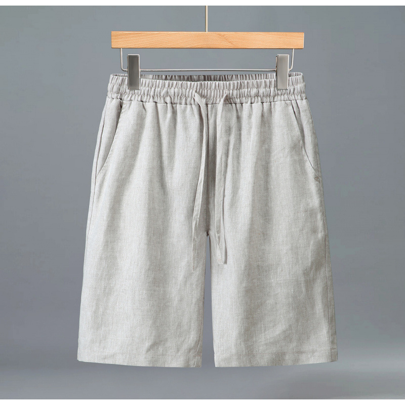 3045 순수 린넨 반바지 남성 여름 린넨 5부 바지 남성 비치 바지 중간 바지 루즈 캐주얼 대형 바지