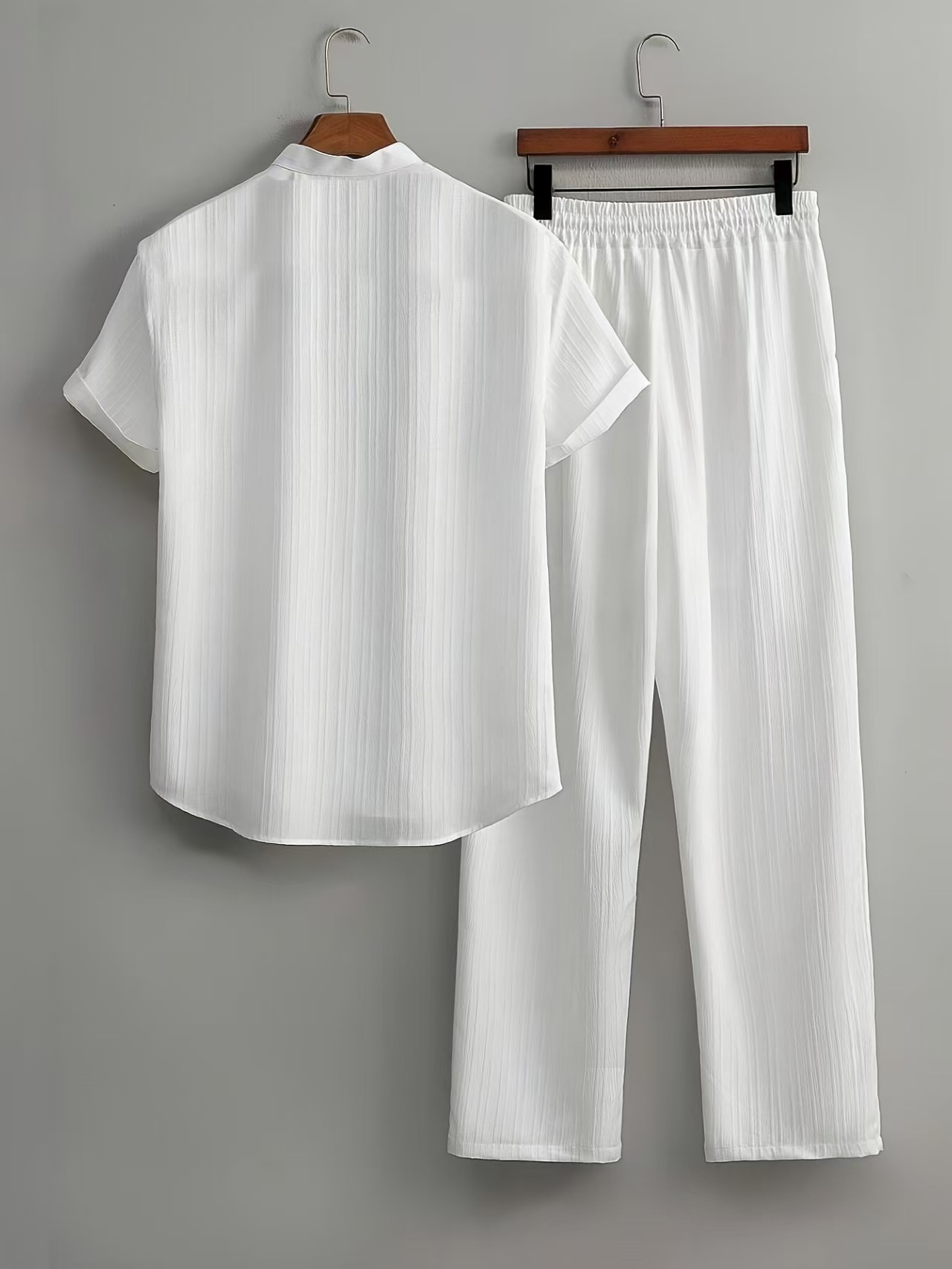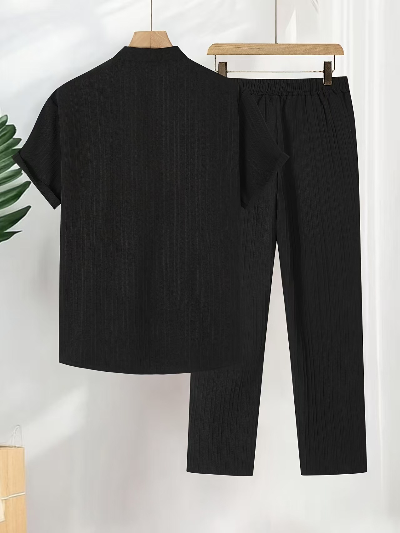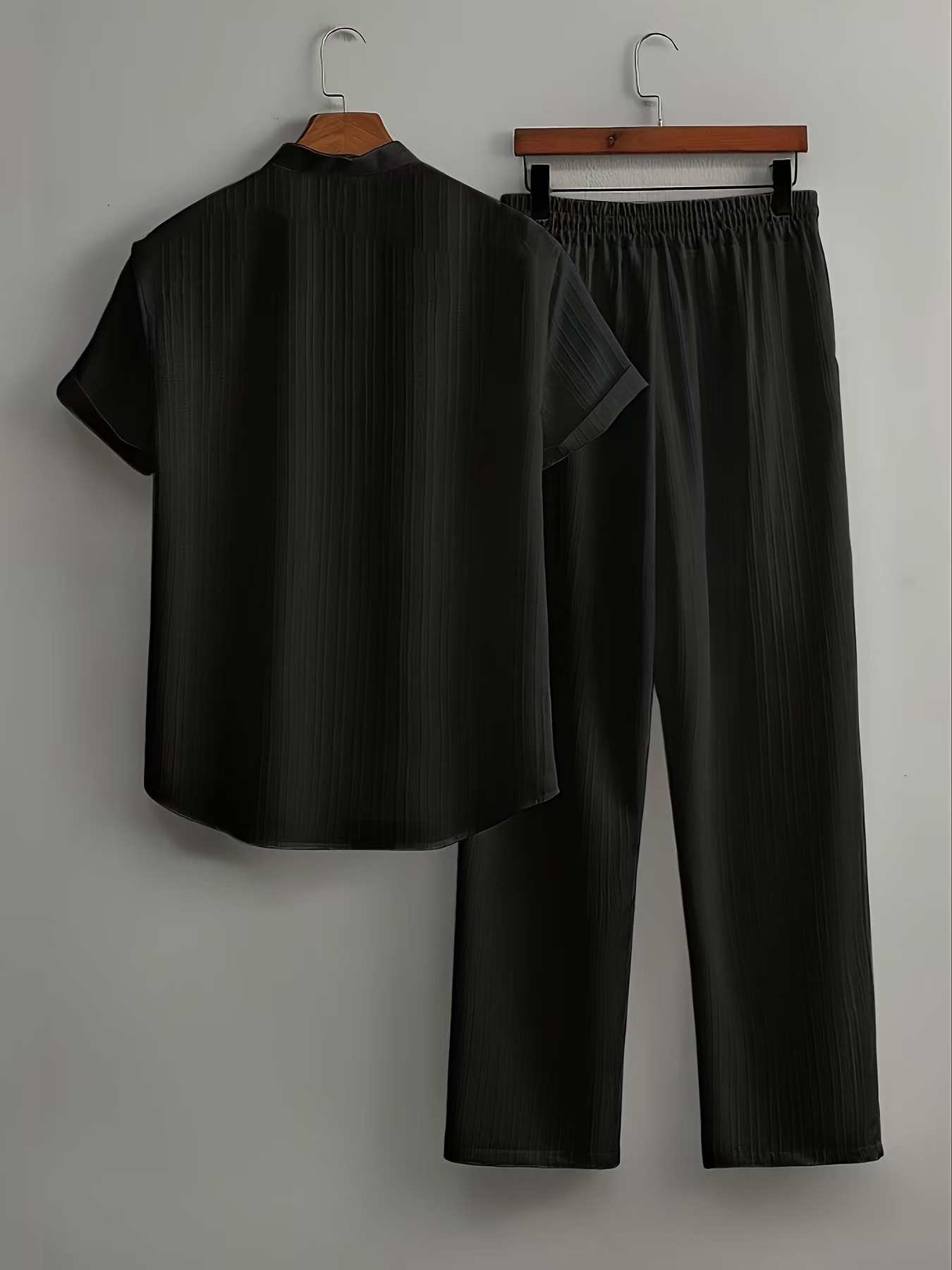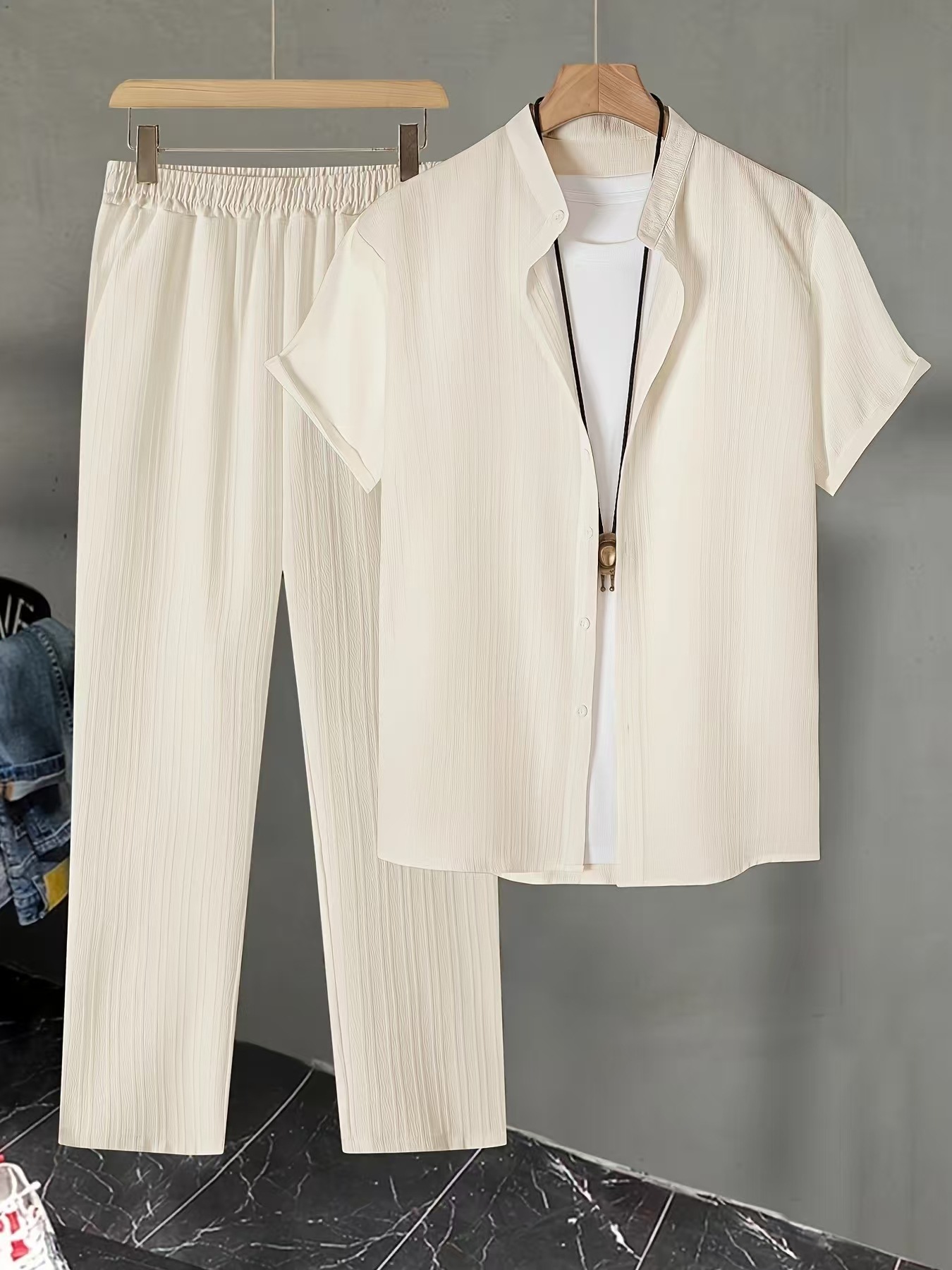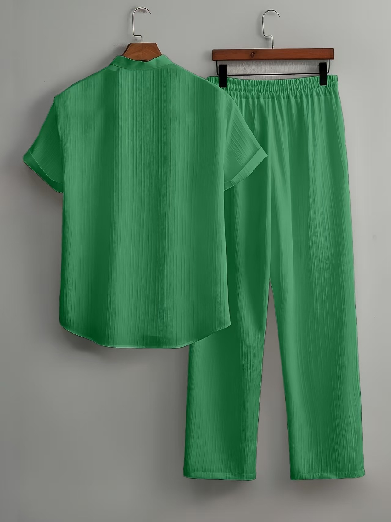 유럽과 미국의 국경 간 AliExpress 대외 무역 남성 캐주얼 멀티 컬러 비치웨어 대나무 주름 반팔 양복 투피스 세트스토어 가기