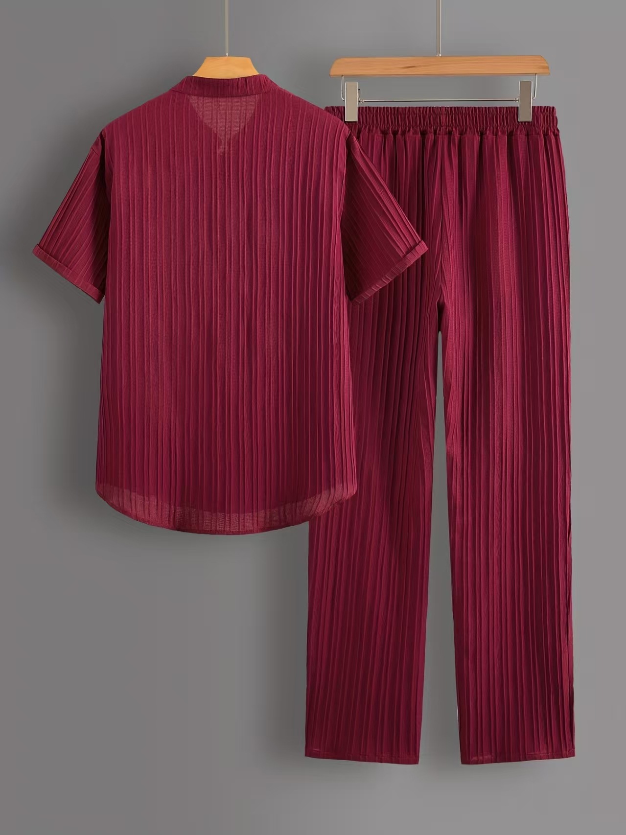 유럽과 미국의 국경 간 AliExpress 대외 무역 남성 캐주얼 멀티 컬러 비치웨어 대나무 주름 반팔 양복 투피스 세트