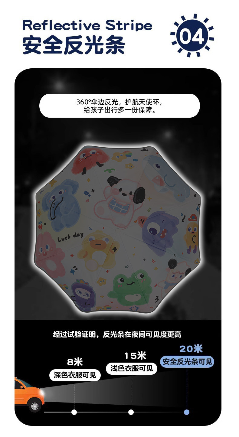학교에 가는 소년 소녀를 위한 어린이 우산, 어린이를 위한 특별, 완전 자동 원클릭 개폐 반사 스트립 접이식 우산