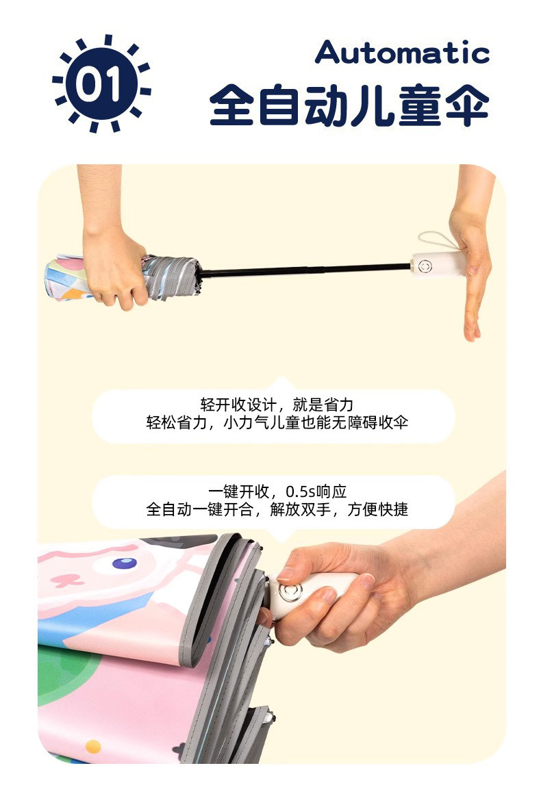 학교에 가는 소년 소녀를 위한 어린이 우산, 어린이를 위한 특별, 완전 자동 원클릭 개폐 반사 스트립 접이식 우산스토어 가기