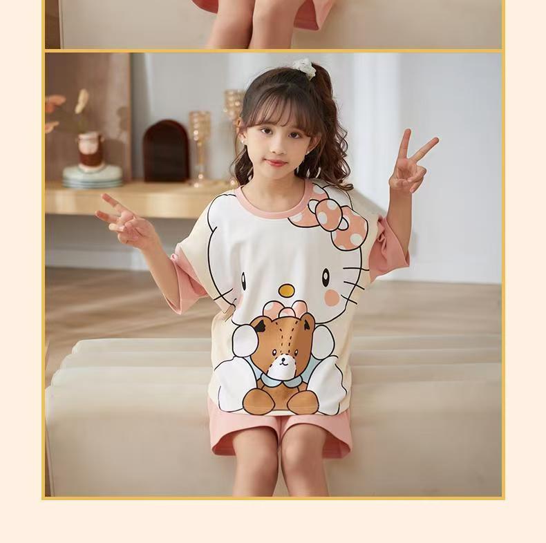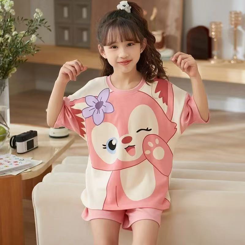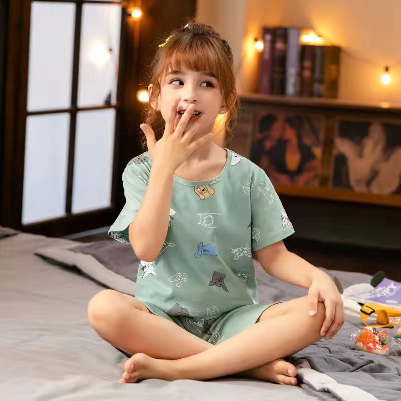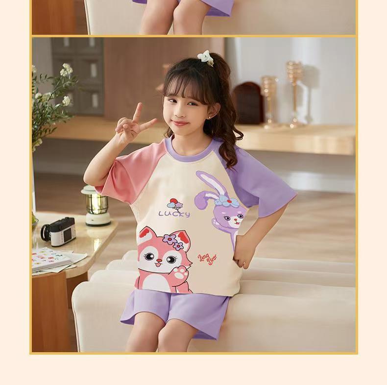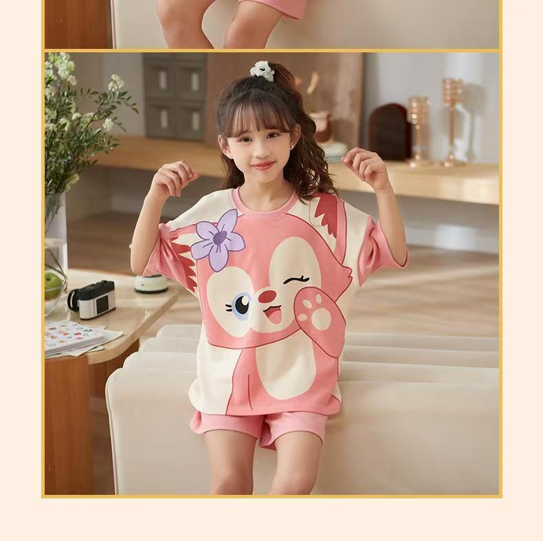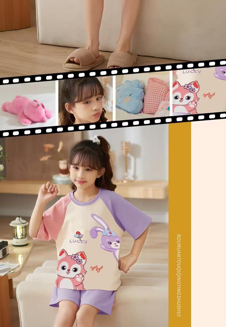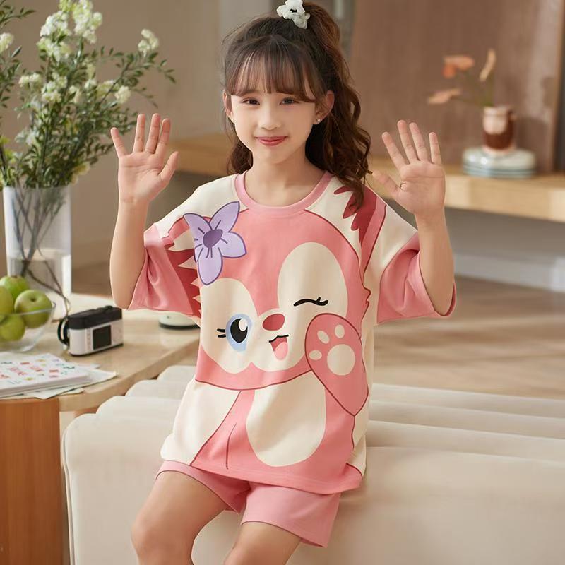 2025 여자 잠옷, 얇은 에어컨 옷, 중대형 아동용 반팔 어린 소녀 가정복, 아동용 여름 베이비 슈트스토어 가기