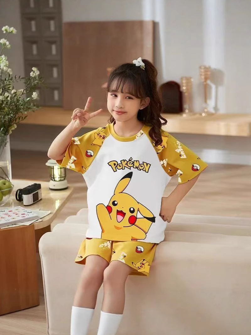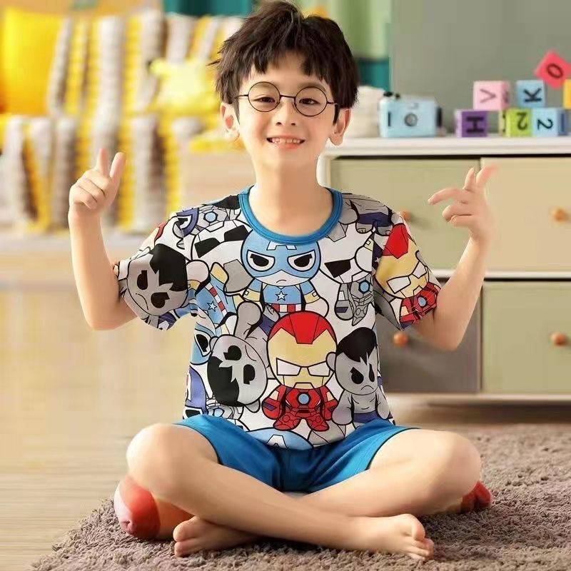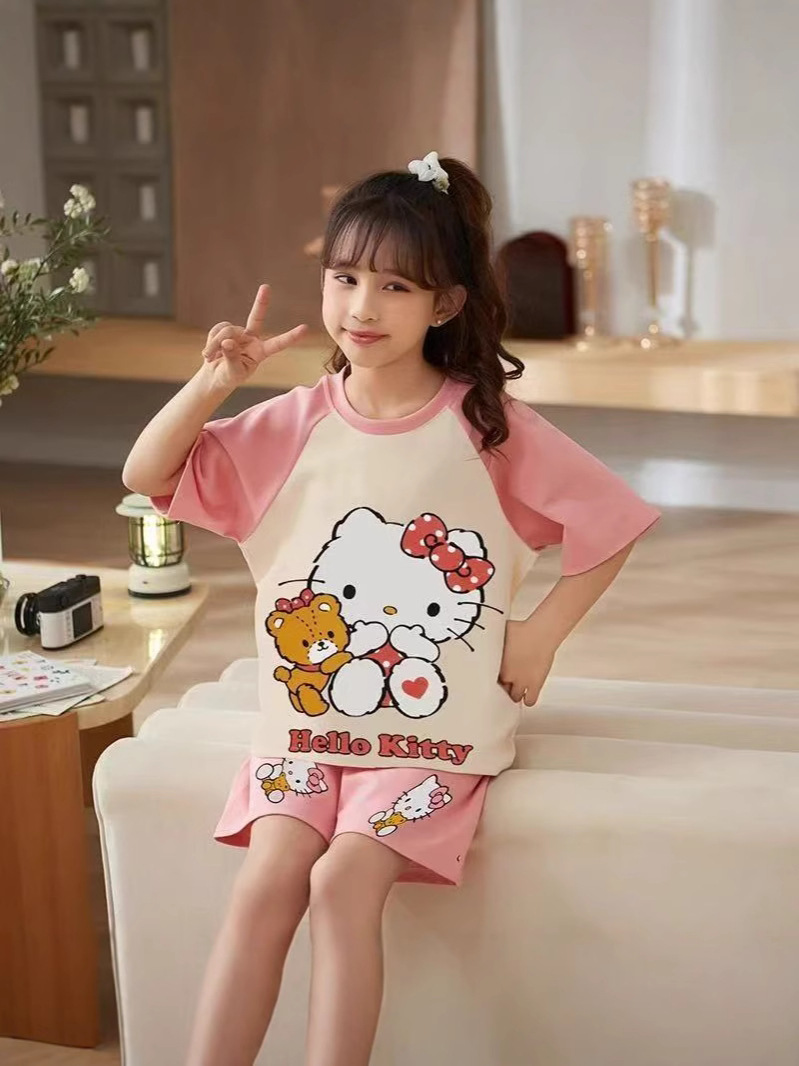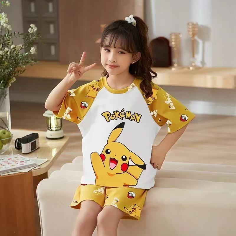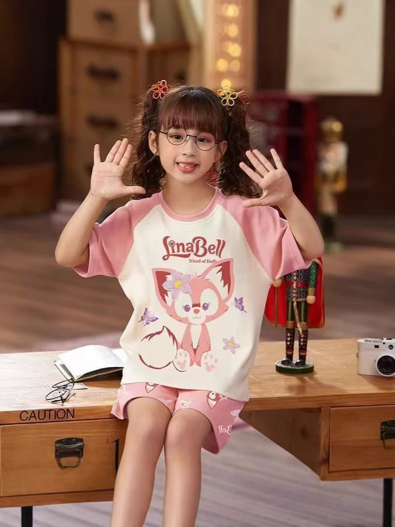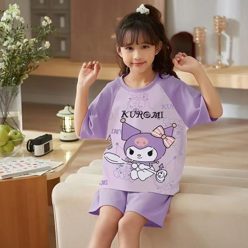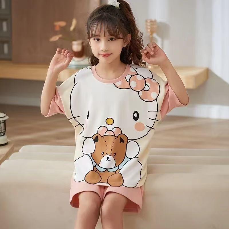 2025 여자 잠옷, 얇은 에어컨 옷, 중대형 아동용 반팔 어린 소녀 가정복, 아동용 여름 베이비 슈트스토어 가기