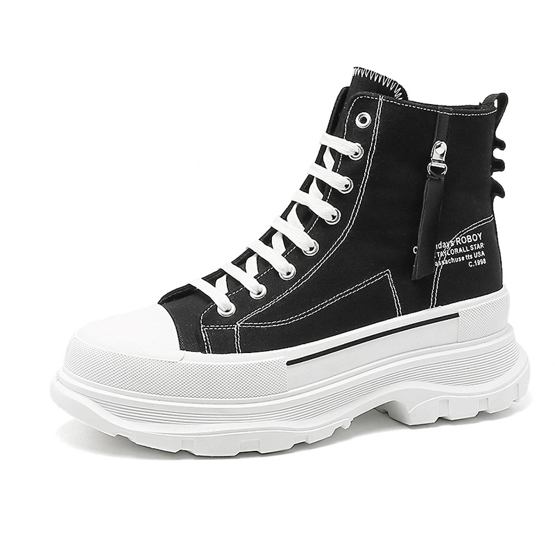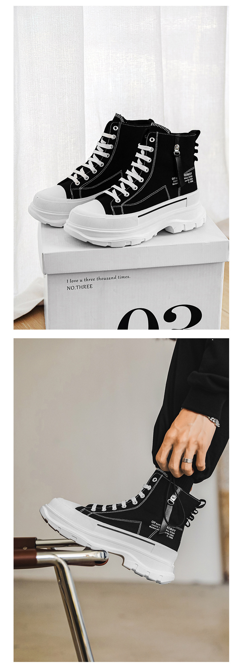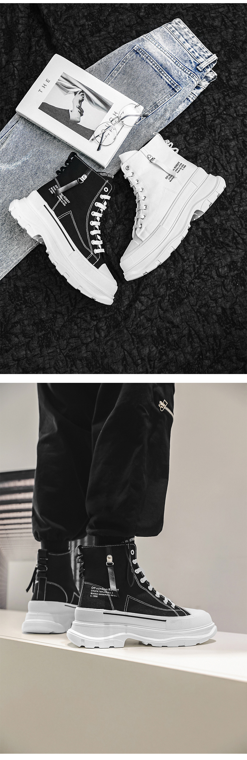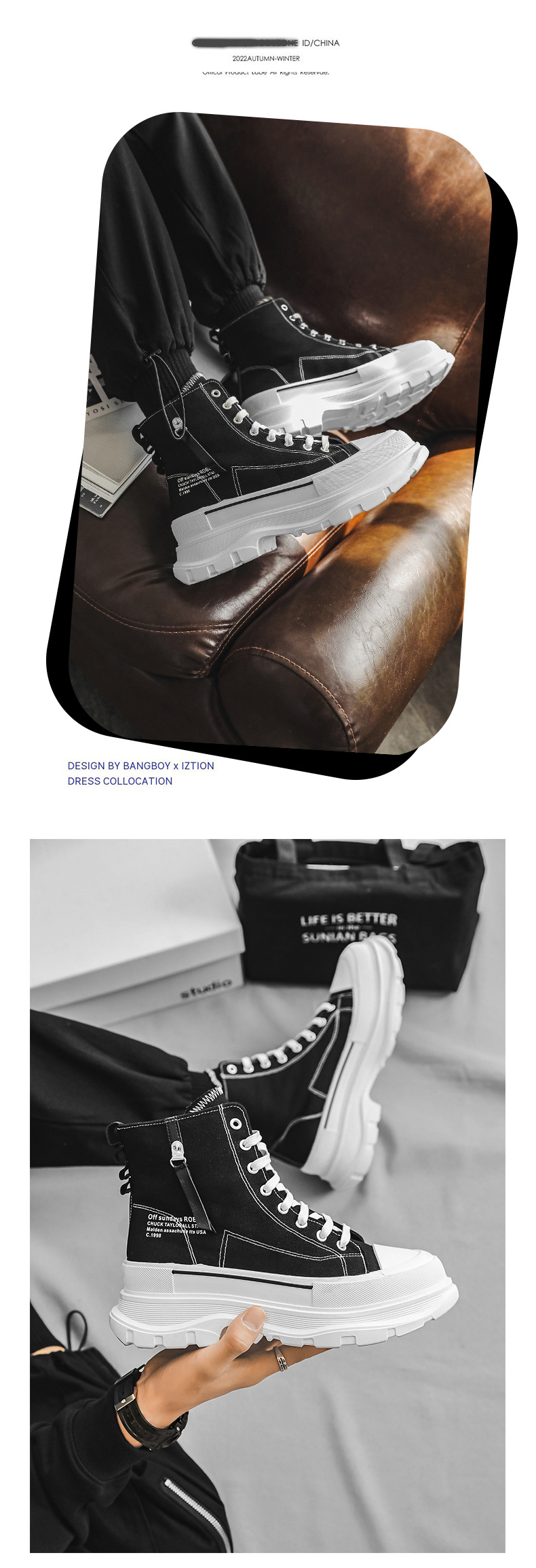 청소년을 위한 사계절 하이탑 캔버스 슈즈, 편안한 아웃도어 스포츠 및 레저 남성화, 패셔너블한 레이스업 두꺼운 밑창 키높이 슈즈스토어 가기