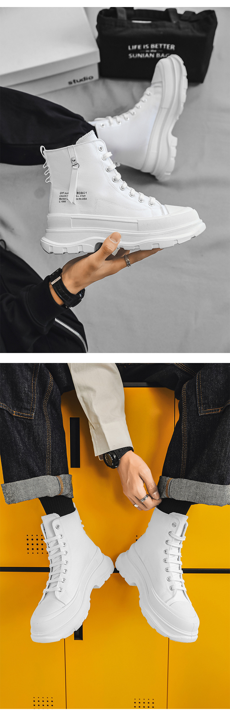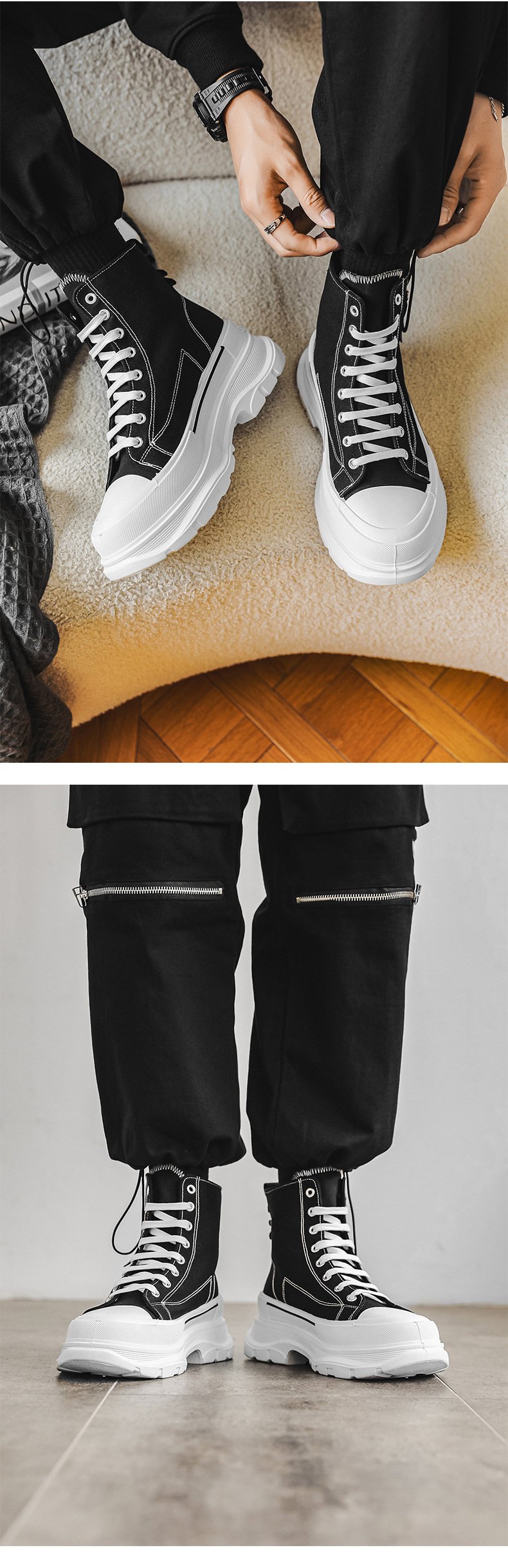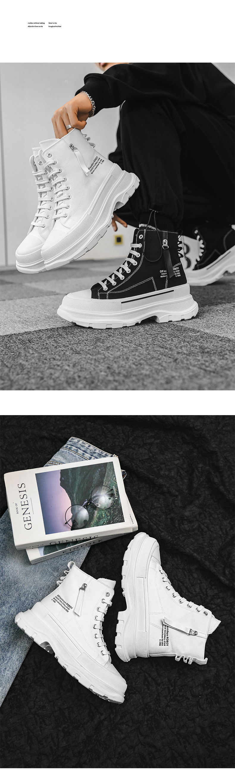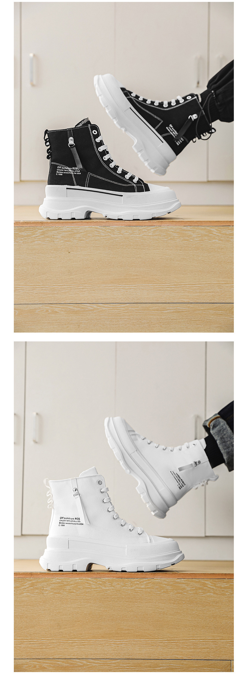 청소년을 위한 사계절 하이탑 캔버스 슈즈, 편안한 아웃도어 스포츠 및 레저 남성화, 패셔너블한 레이스업 두꺼운 밑창 키높이 슈즈스토어 가기
