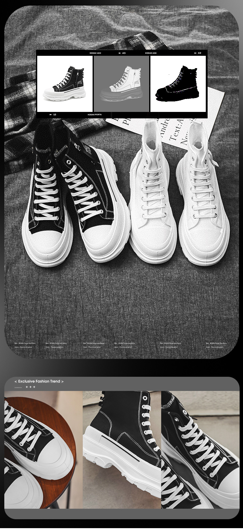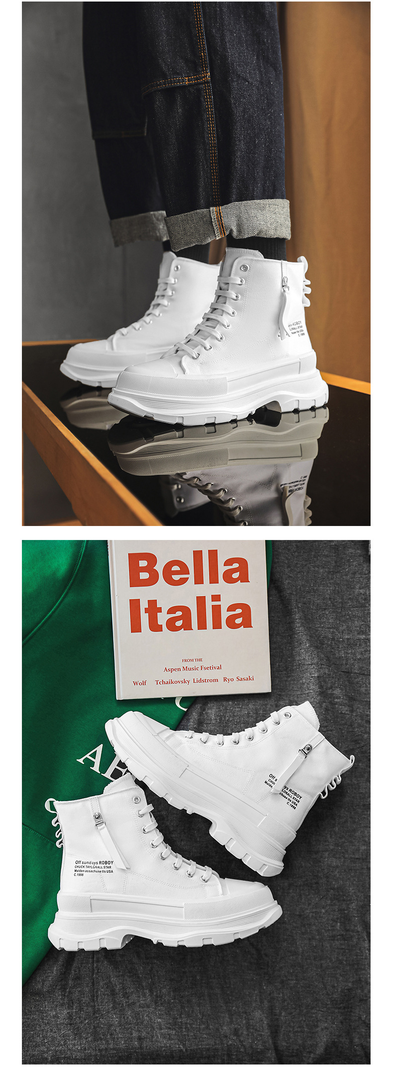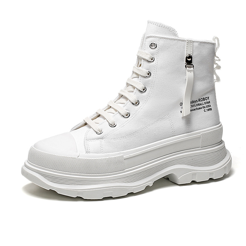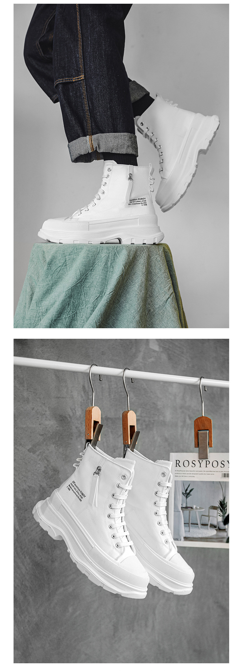 청소년을 위한 사계절 하이탑 캔버스 슈즈, 편안한 아웃도어 스포츠 및 레저 남성화, 패셔너블한 레이스업 두꺼운 밑창 키높이 슈즈스토어 가기
