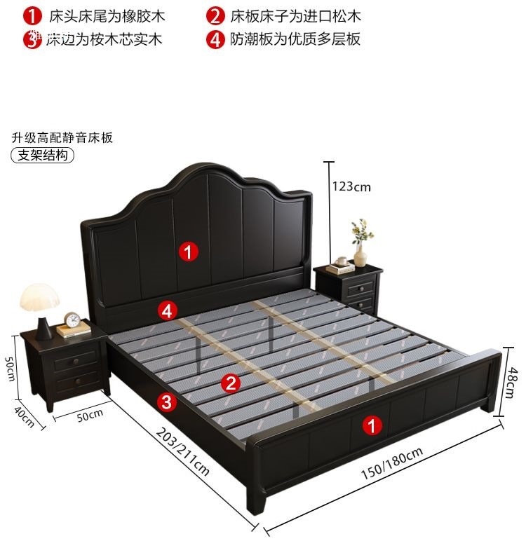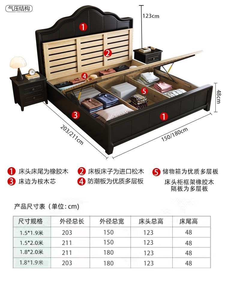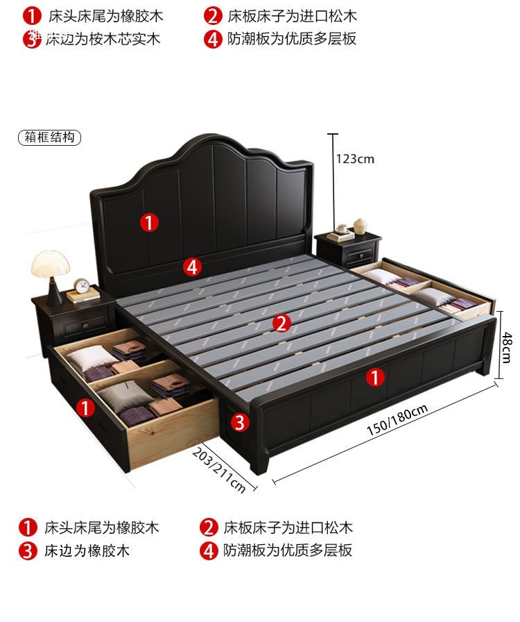 • 원목 침대 + 20cm 5D 라텍스 매트리스 + 캐비닛*2