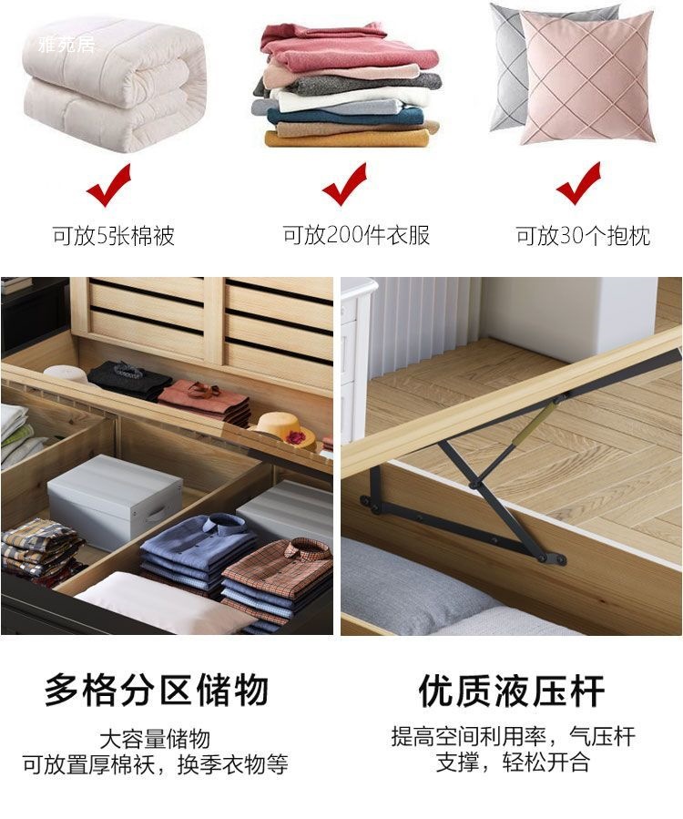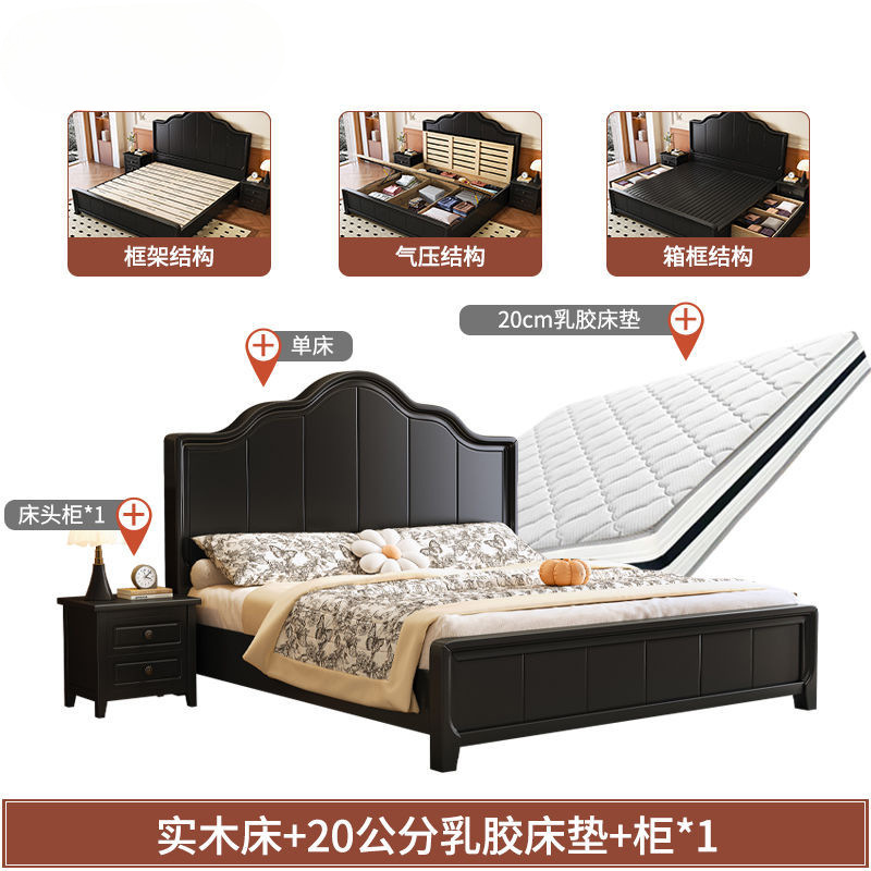• 원목 침대 + 20cm 5D 라텍스 매트리스 + 캐비닛 * 1