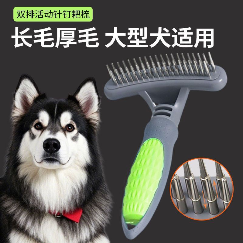 긴 털을 가진 애완견을 위한 털 제거 대형견 빗, 이중 행 갈퀴 브러시, 개 골든 리트리버 알래스카 니들 빗