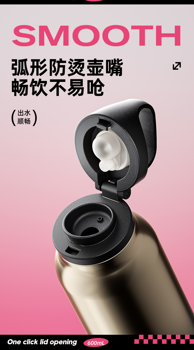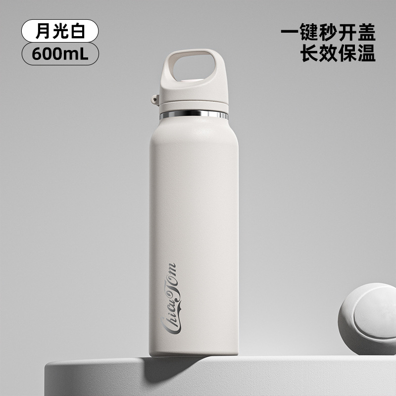 Yinlebe 코카콜라 보온병 컵 대용량 푸시식 남성용 한 손 진공 스레드 자동차 오픈 커버 세 손가락스토어 가기