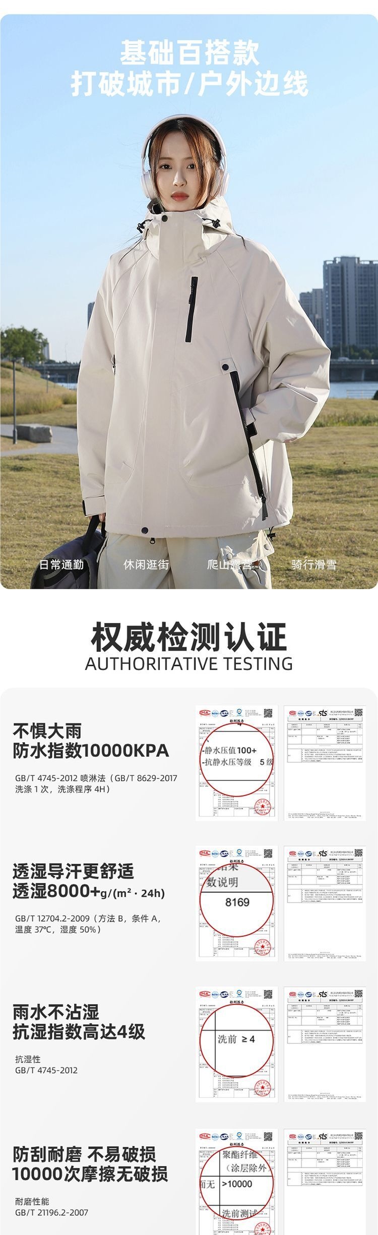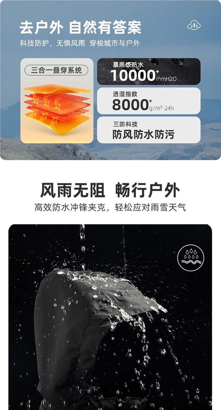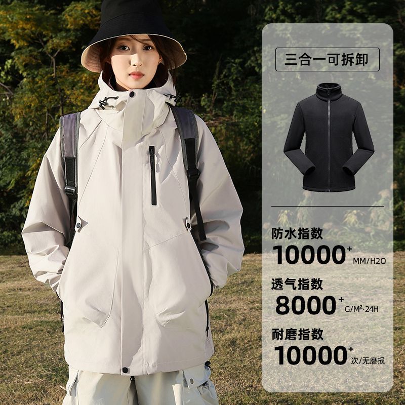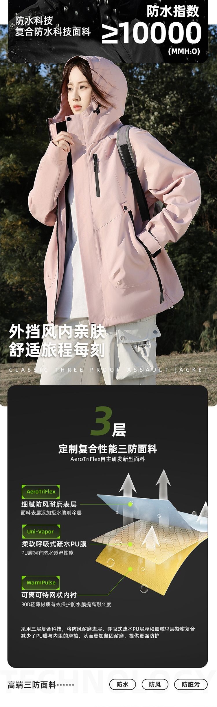 남성용 및 여성용 어썰트 재킷, 아웃도어 3-in-1 탈착식 후드 재킷, 방풍 및 방수 등산복, 따뜻한 상의스토어 가기