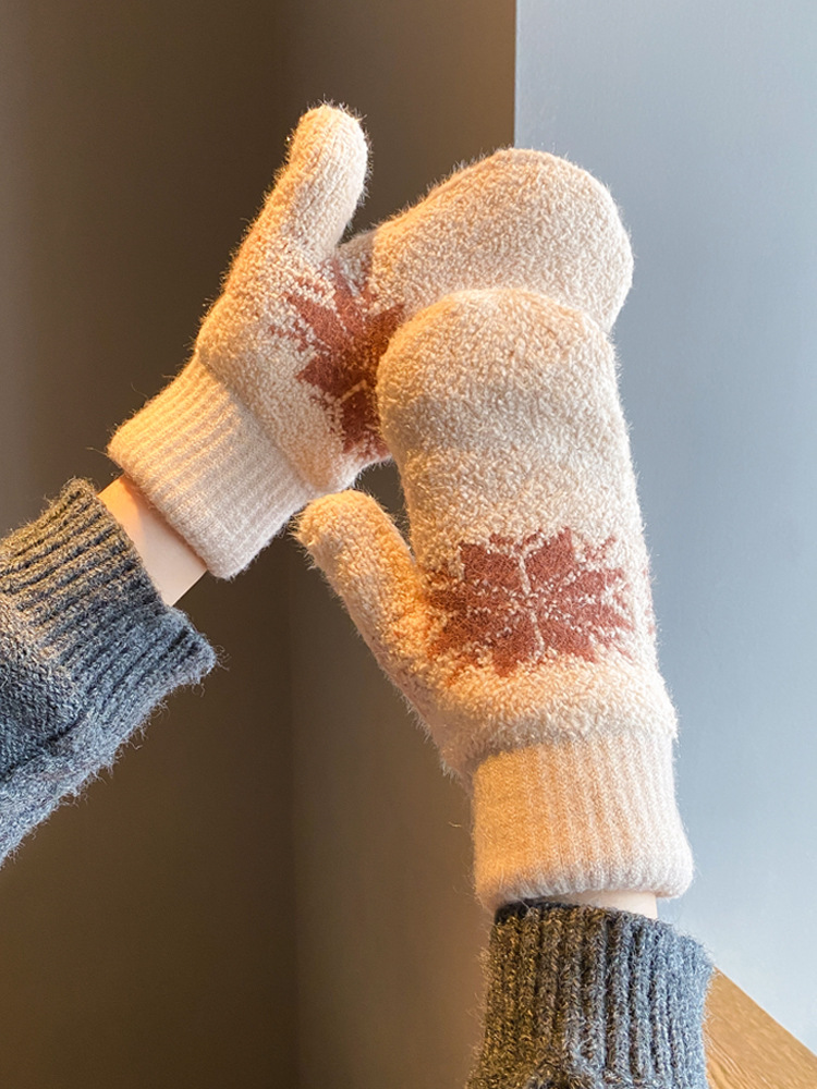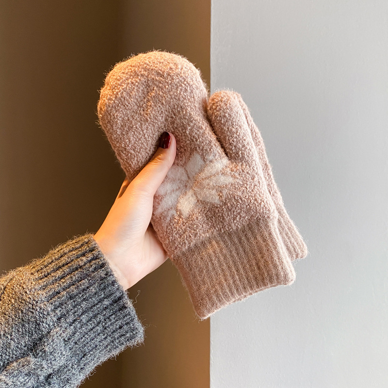 겨울철 여성을 위한 벨벳과 두꺼운 눈송이 장갑, 따뜻하고 방풍 및 방한, 학생 야외 사이클링 및 사이클링 장갑