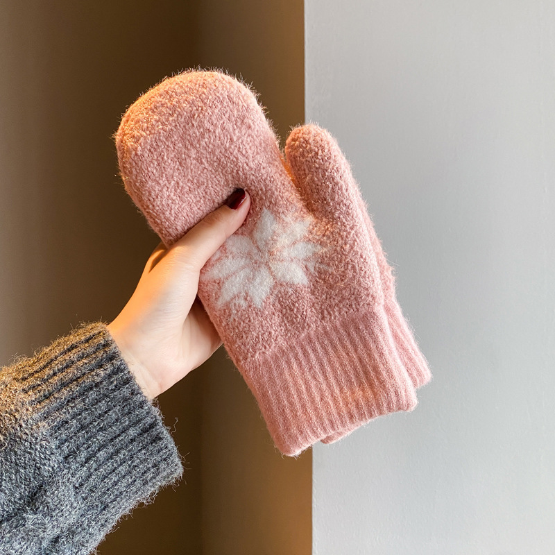 겨울철 여성을 위한 벨벳과 두꺼운 눈송이 장갑, 따뜻하고 방풍 및 방한, 학생 야외 사이클링 및 사이클링 장갑스토어 가기