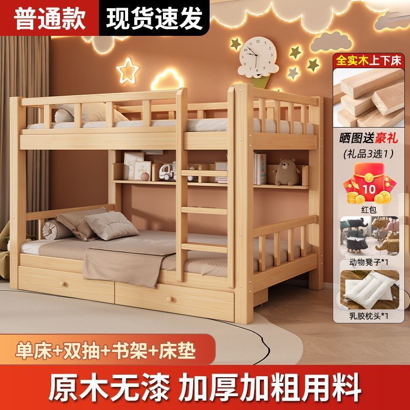 • [두꺼운 통나무 모델] 더블 침대 + 책장 + 실크 치실 매트리스*2