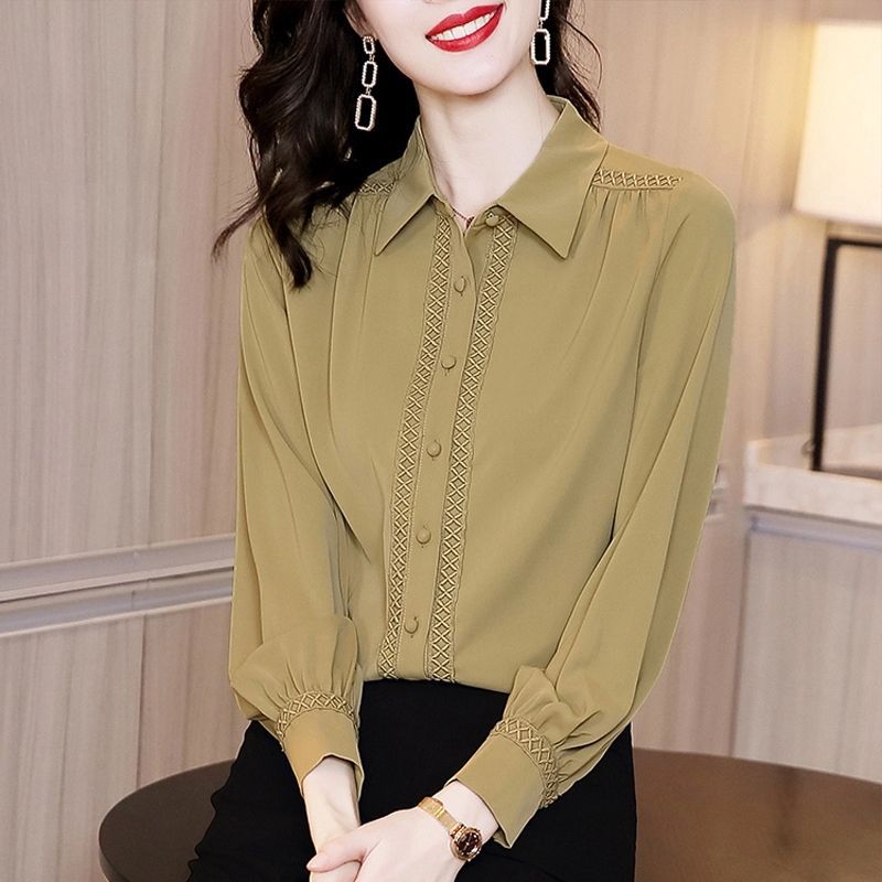 여성스럽고 패셔너블한 봄, 가을 셔츠, 긴팔 새 셔츠, 가을 탑, 여성용 쉬폰 셔츠 2025스토어 가기
