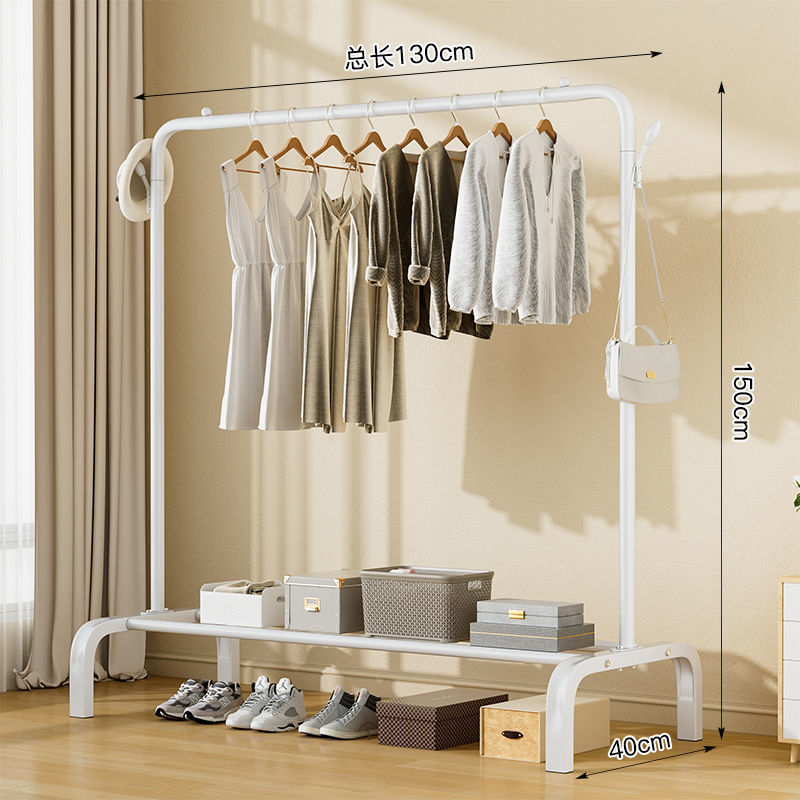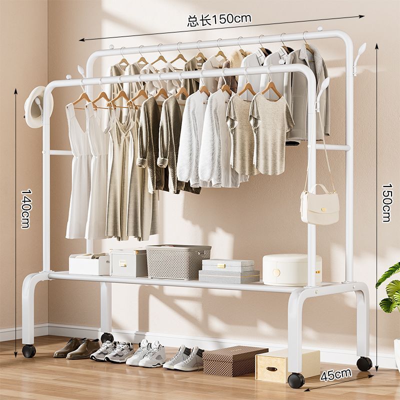 • 흰색 강화 이중극 150cm + 옷걸이 + 바퀴 4개