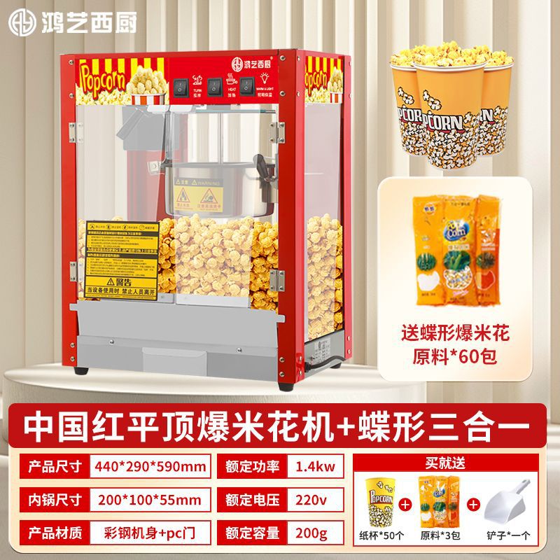 • [중국 레드 플랫탑 팝콘 기계] + 나비 쓰리인원