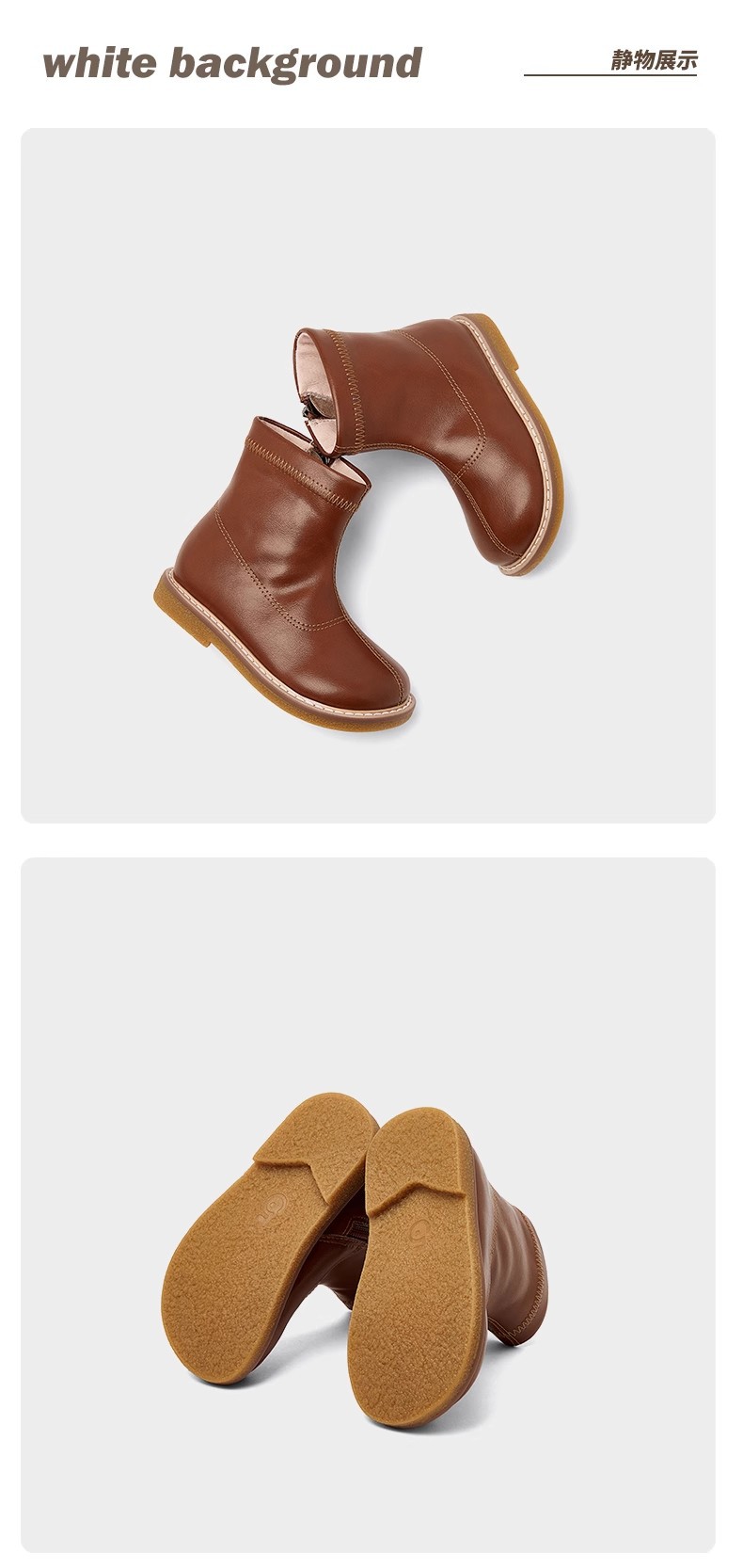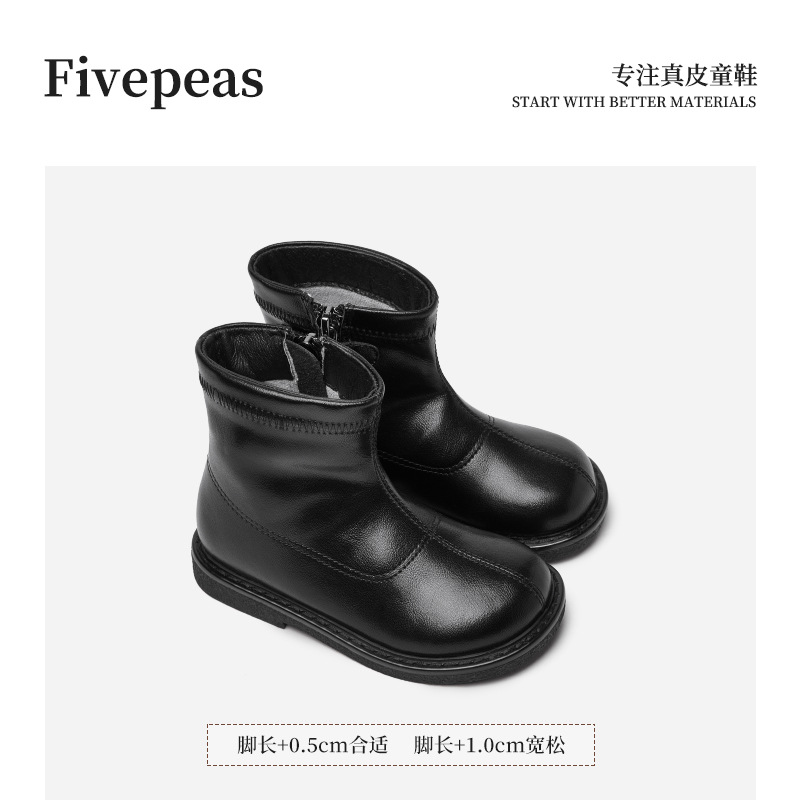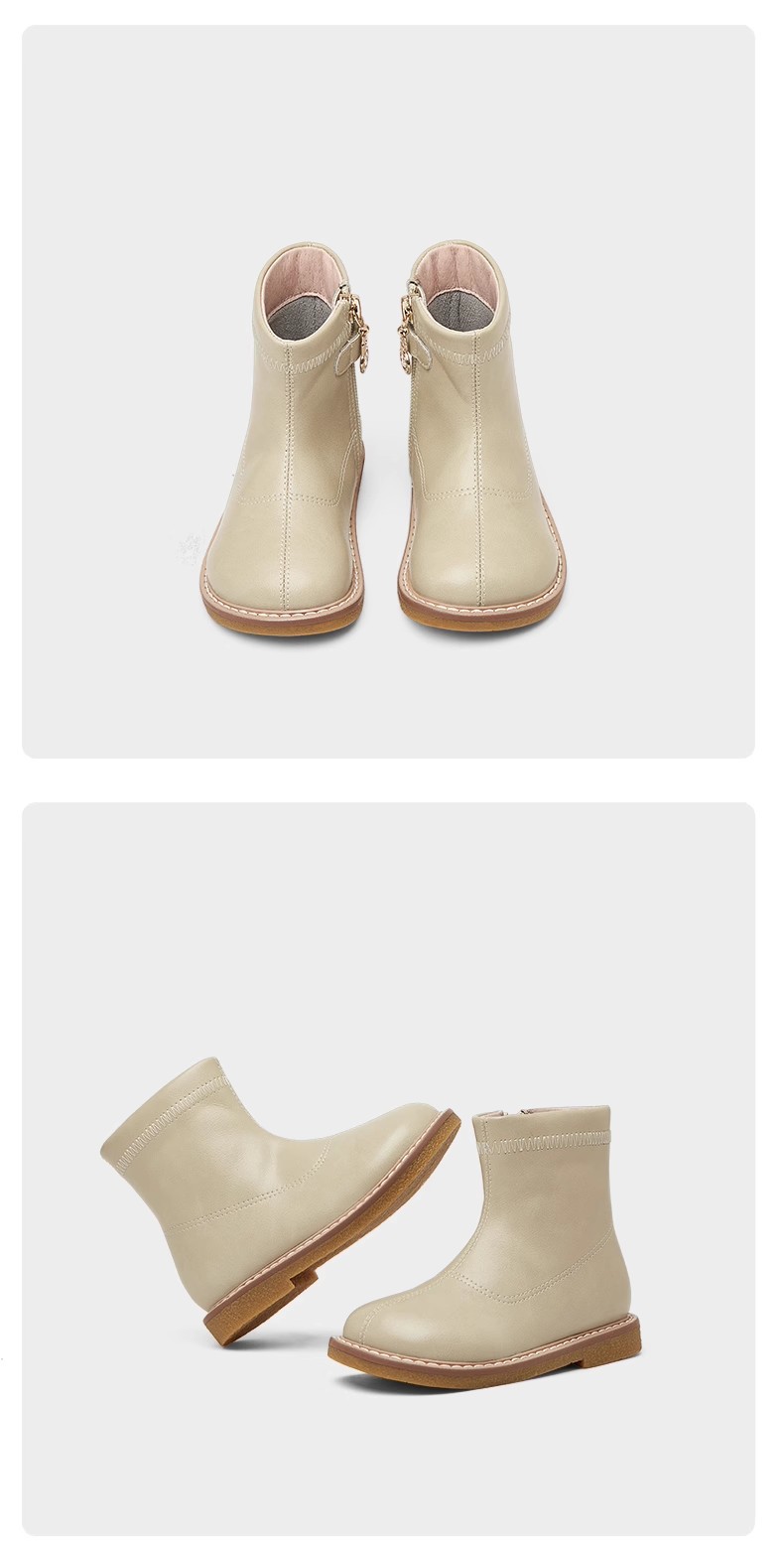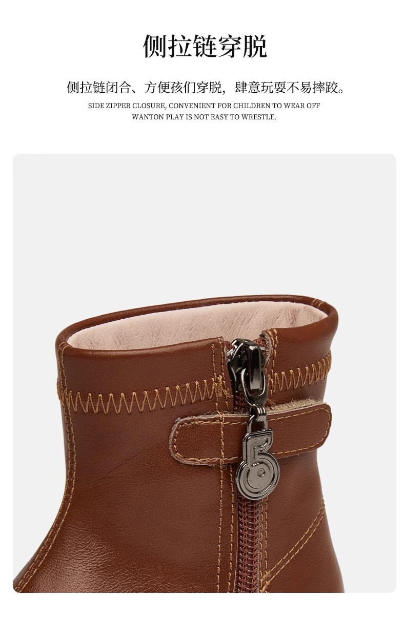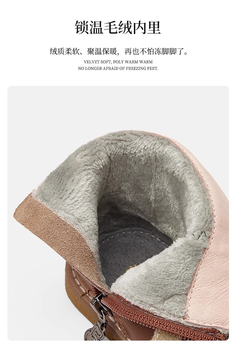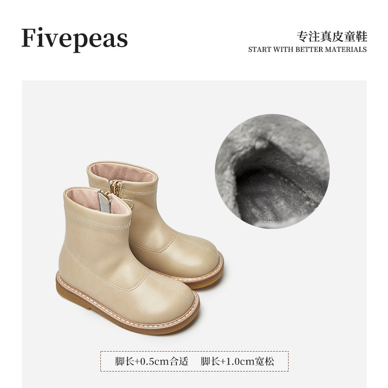 Five Beans 여아 부츠 플러스 벨벳 아동용 마틴 부츠 아동용 가죽 부츠 겨울 베이비 숏부츠 공주 스노우 코튼 부츠