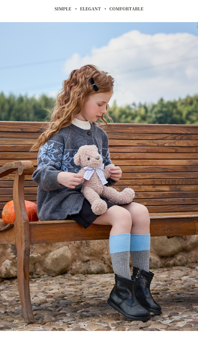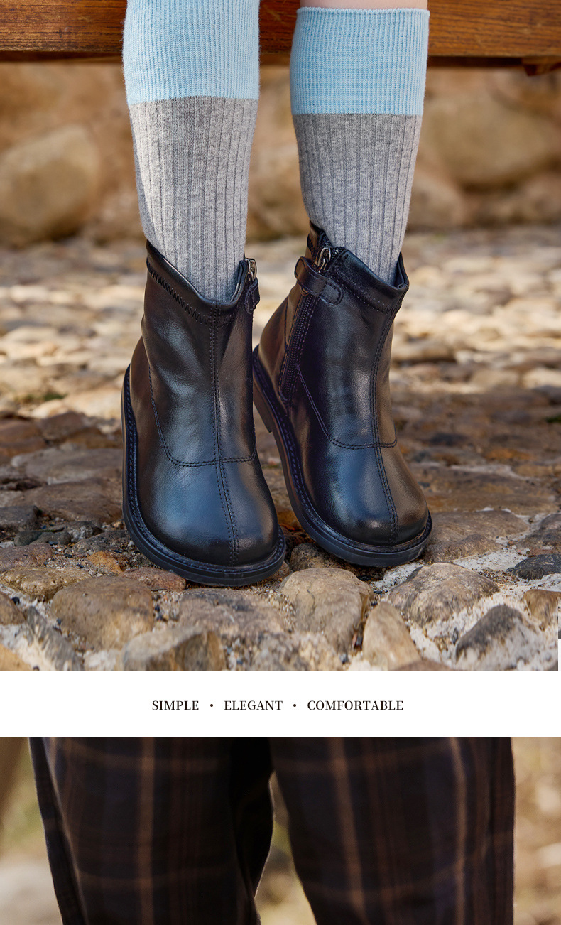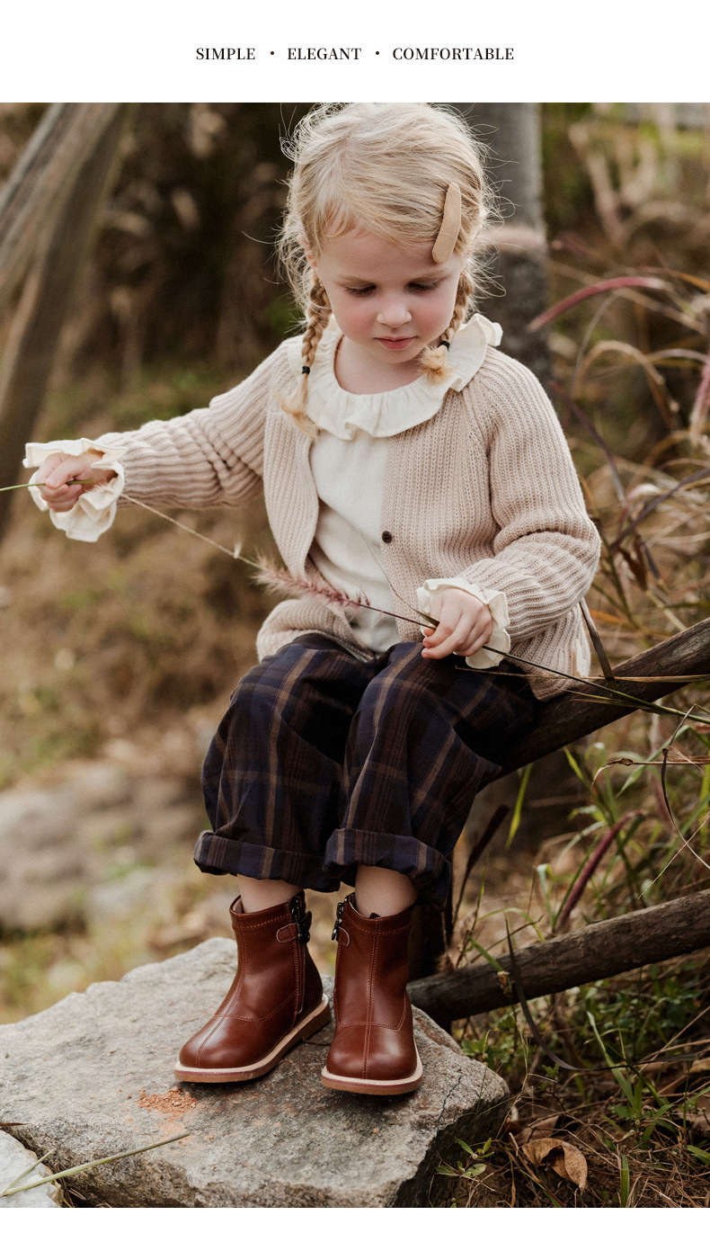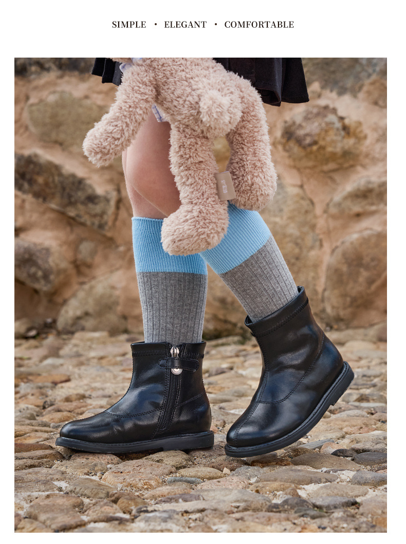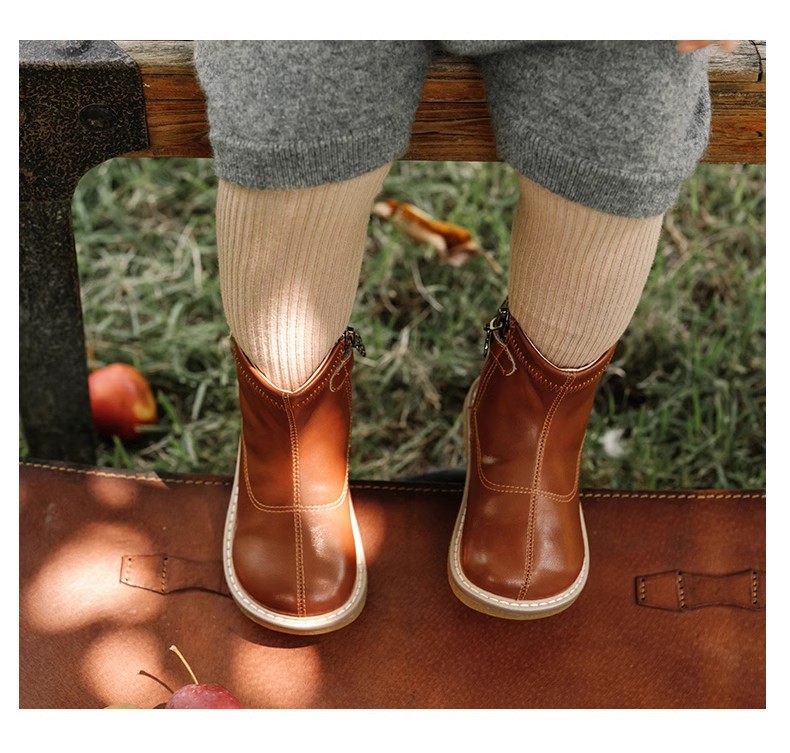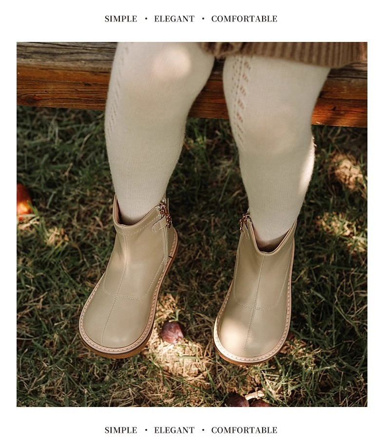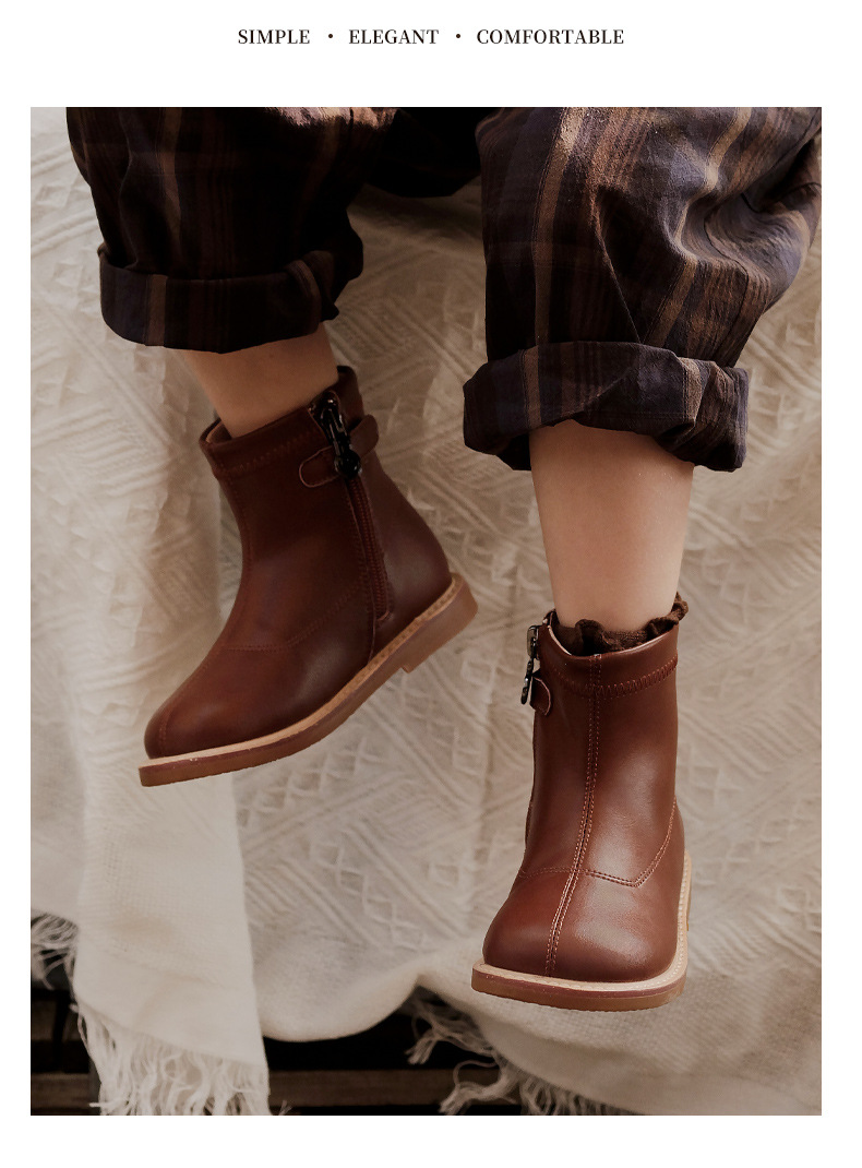 Five Beans 여아 부츠 플러스 벨벳 아동용 마틴 부츠 아동용 가죽 부츠 겨울 베이비 숏부츠 공주 스노우 코튼 부츠