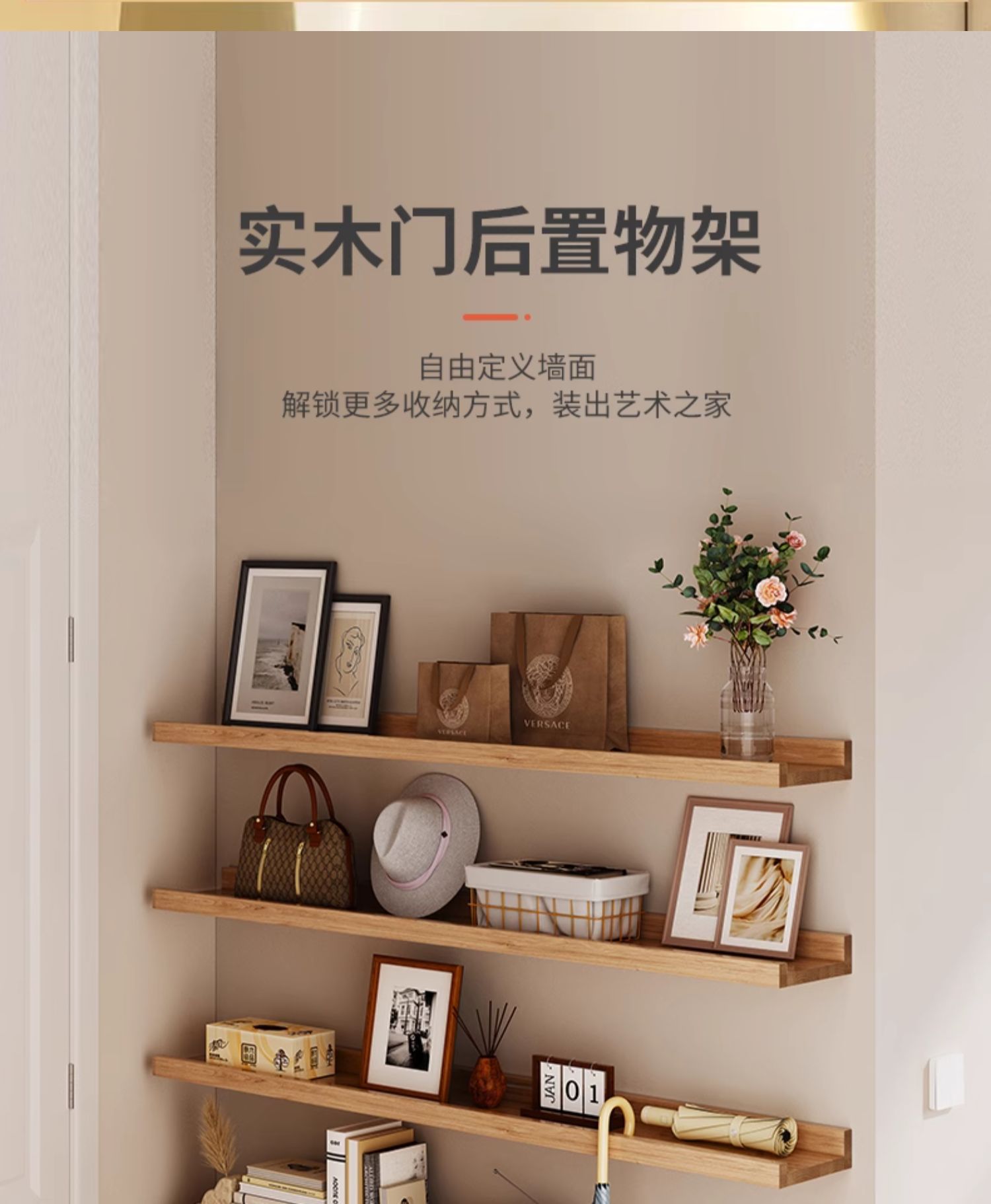 门后超薄置物架实木墙上极窄缝隙收纳展示架松木一字板搁板免漆板