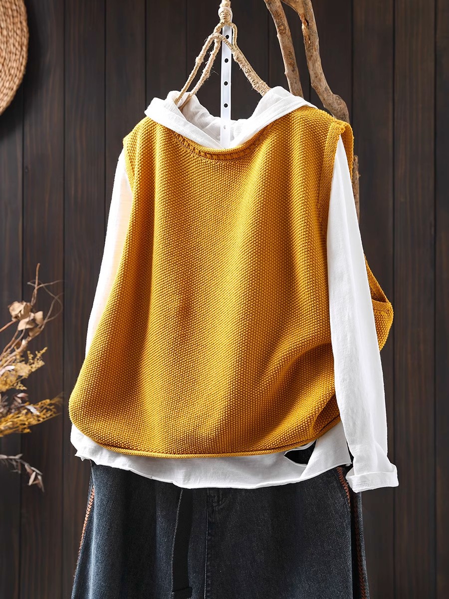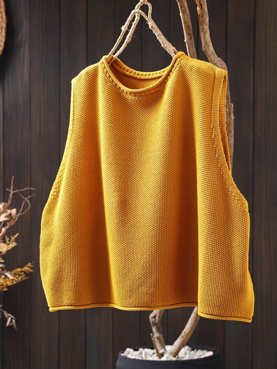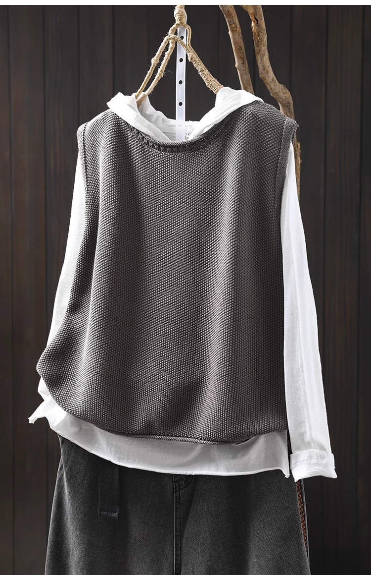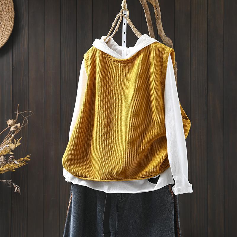 솔리드 컬러 코튼 니트 조끼 여성용 라운드 넥 풀오버 루즈 대형 봄 뉴 레트로 캐주얼 다목적 레이어드 조끼스토어 가기