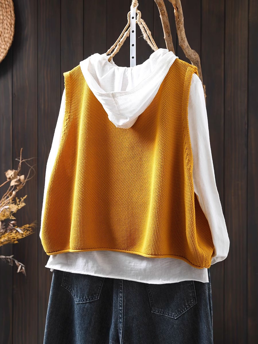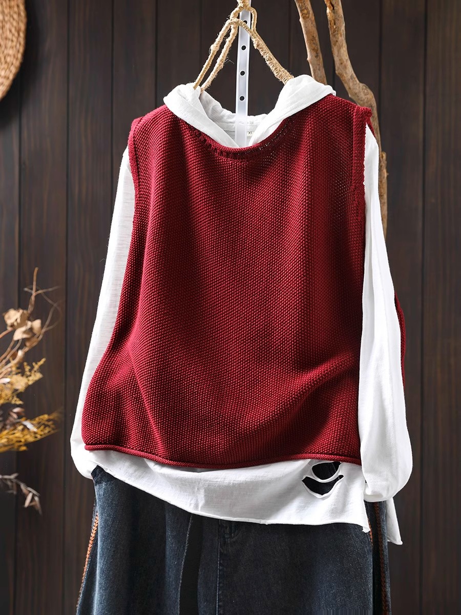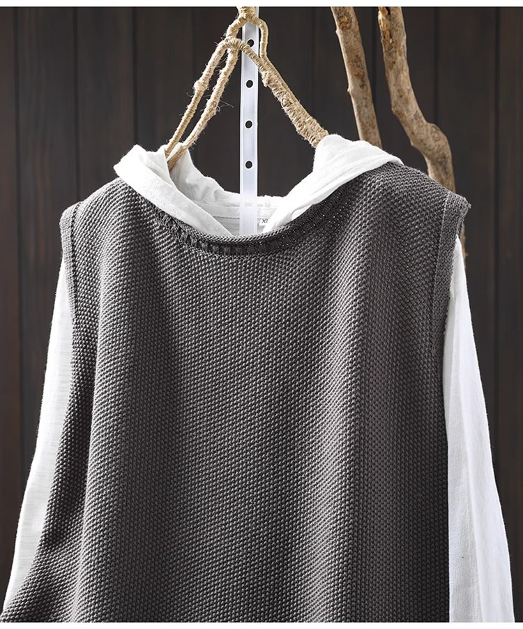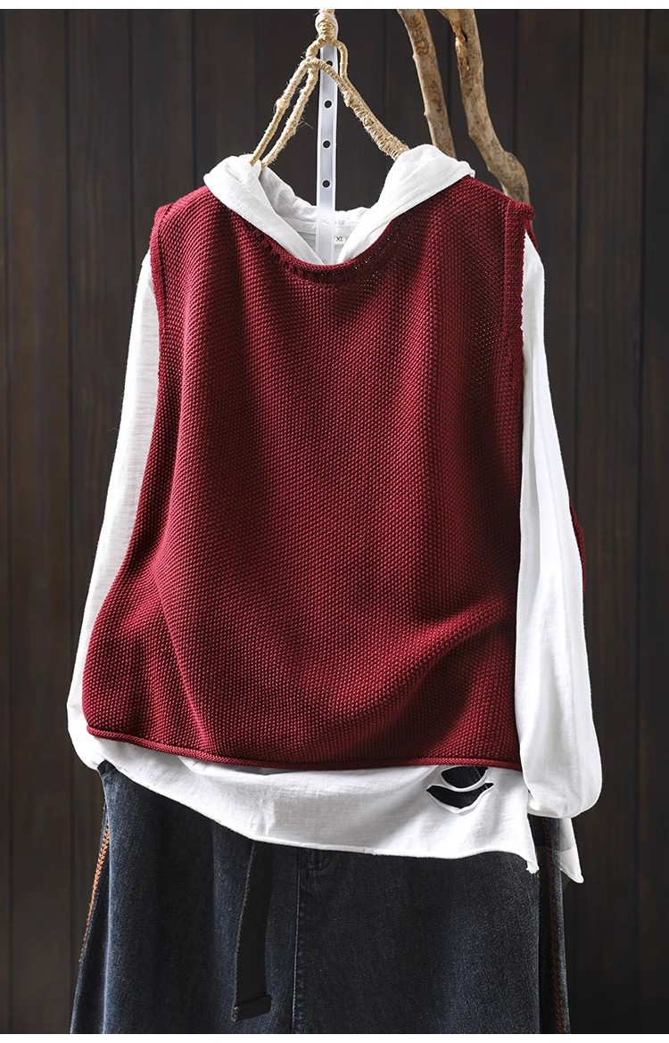 솔리드 컬러 코튼 니트 조끼 여성용 라운드 넥 풀오버 루즈 대형 봄 뉴 레트로 캐주얼 다목적 레이어드 조끼스토어 가기