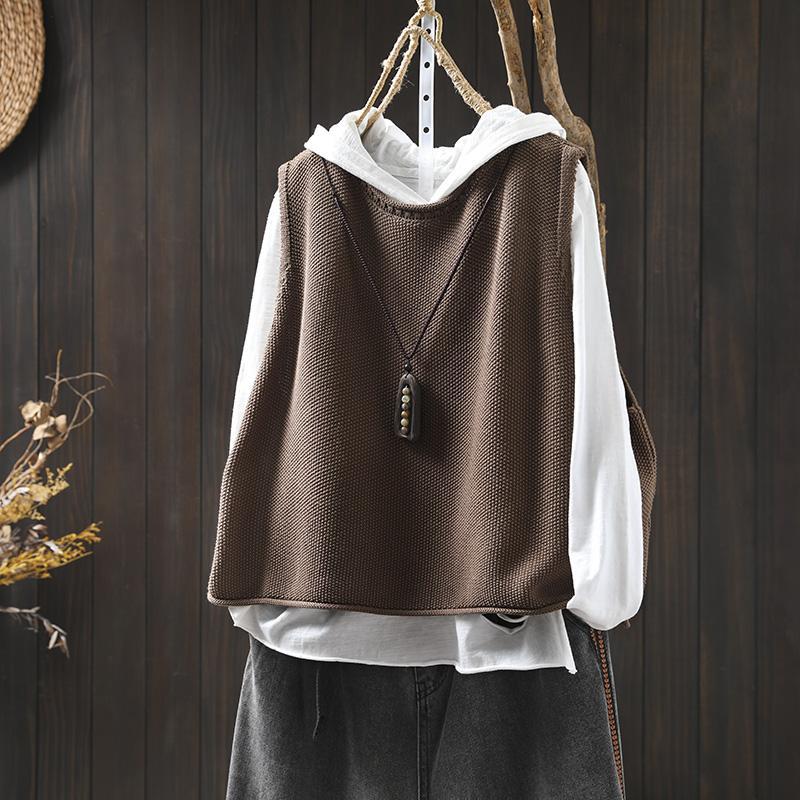 솔리드 컬러 코튼 니트 조끼 여성용 라운드 넥 풀오버 루즈 대형 봄 뉴 레트로 캐주얼 다목적 레이어드 조끼