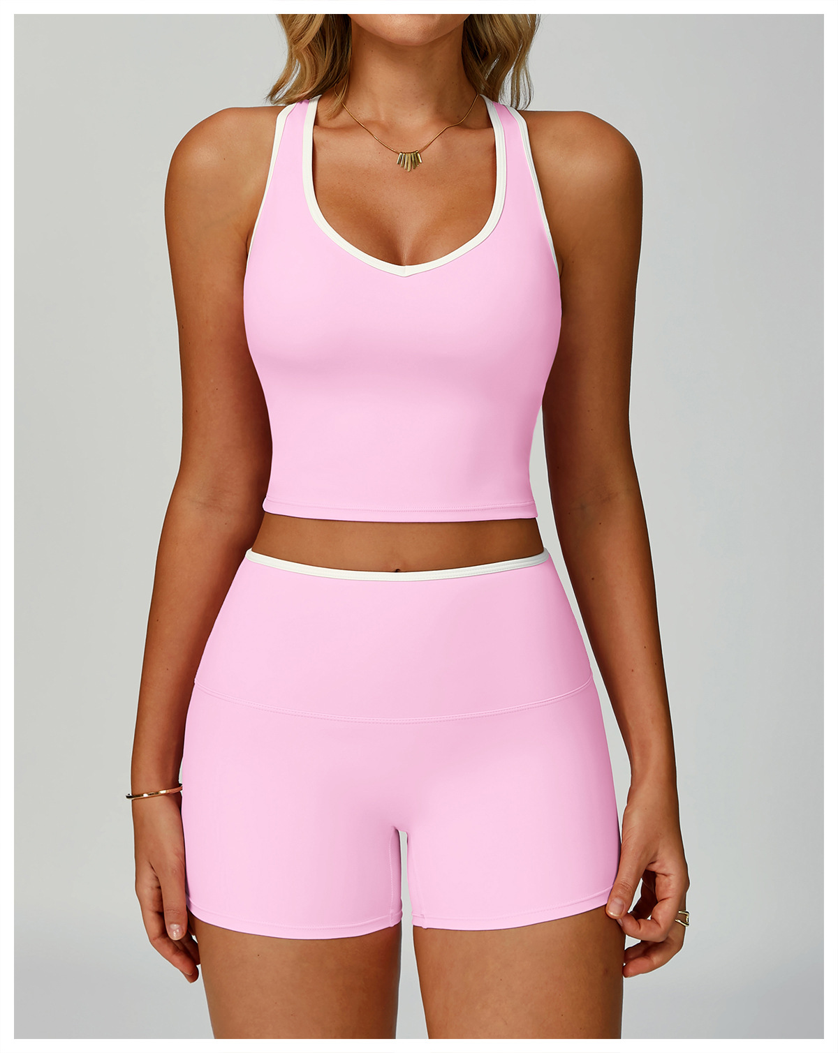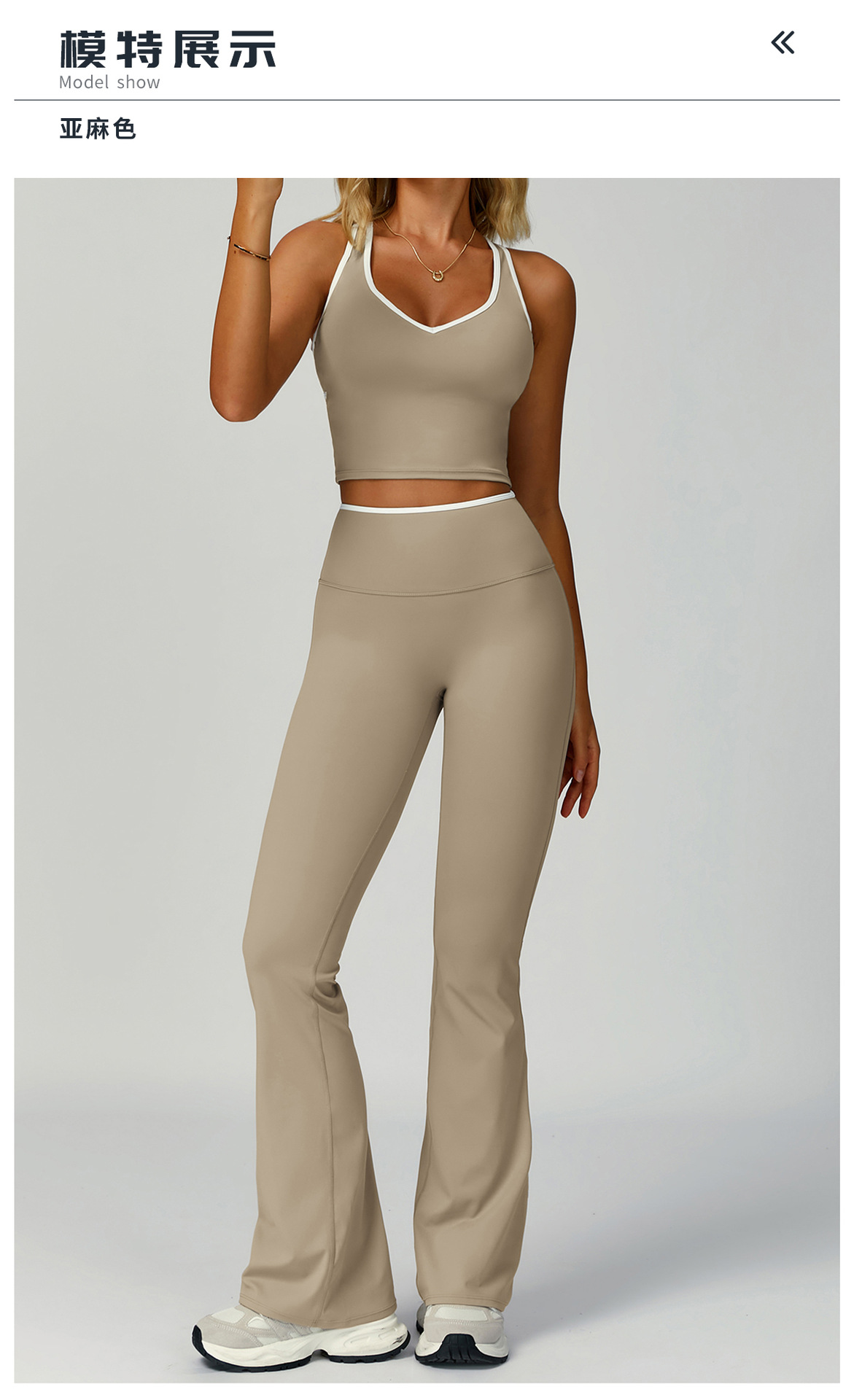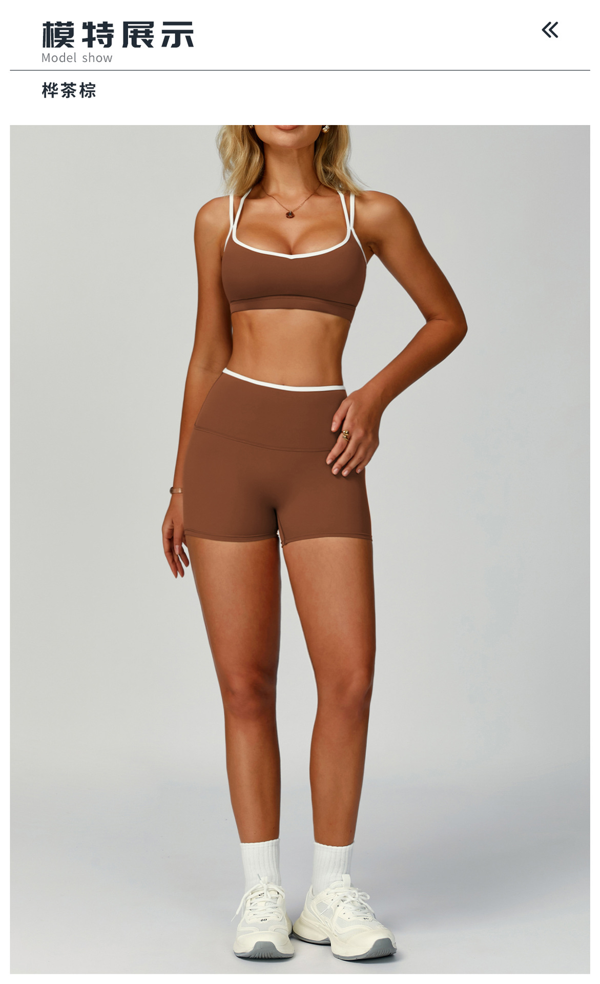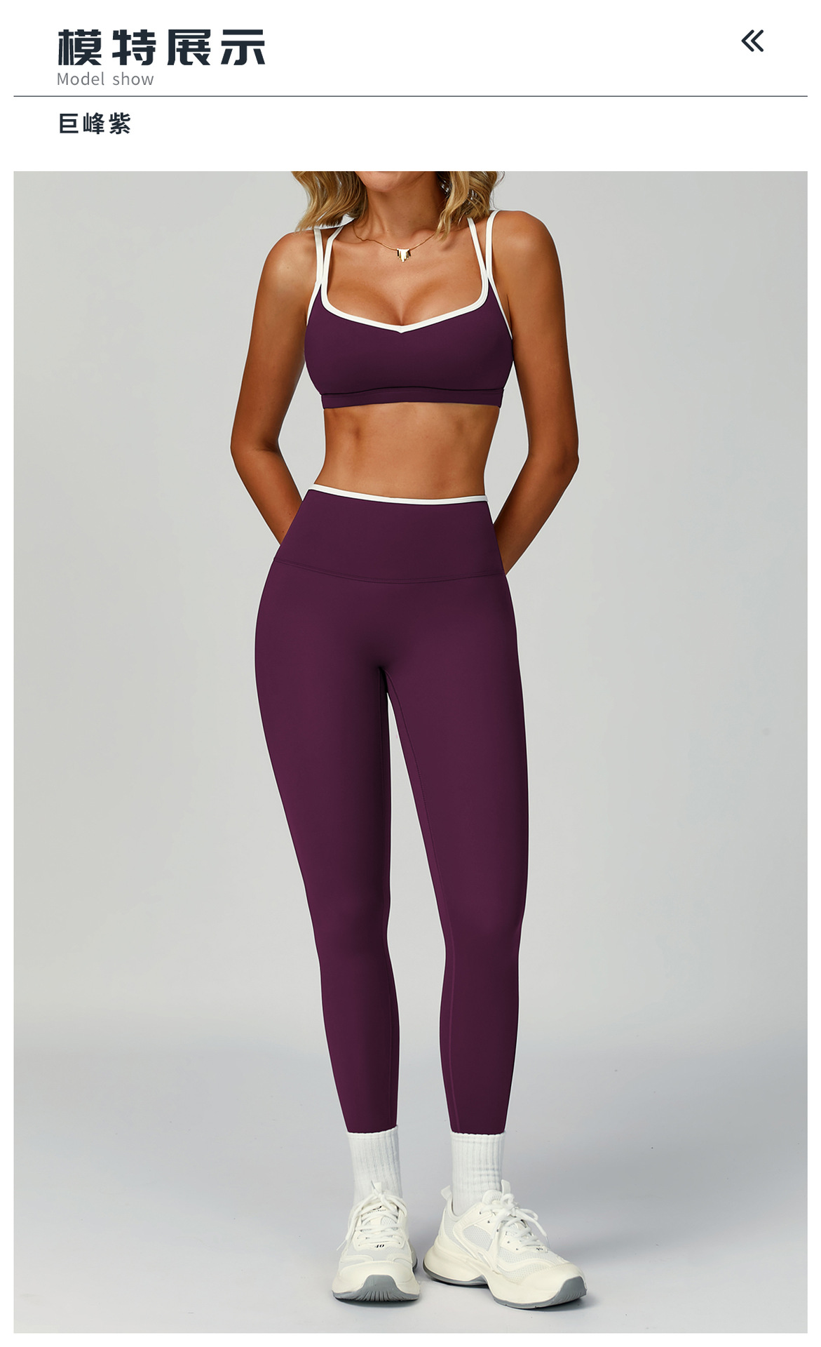 Zechuang 대비 색 가장자리 스포츠 정장 여성의 꽉 끼는 아름다운 등 누드 요가 착용 스포츠 야외 피트니스 정장 9238스토어 가기