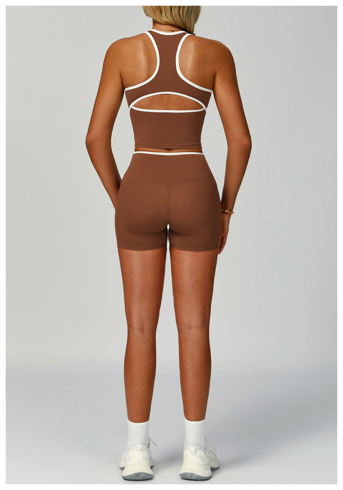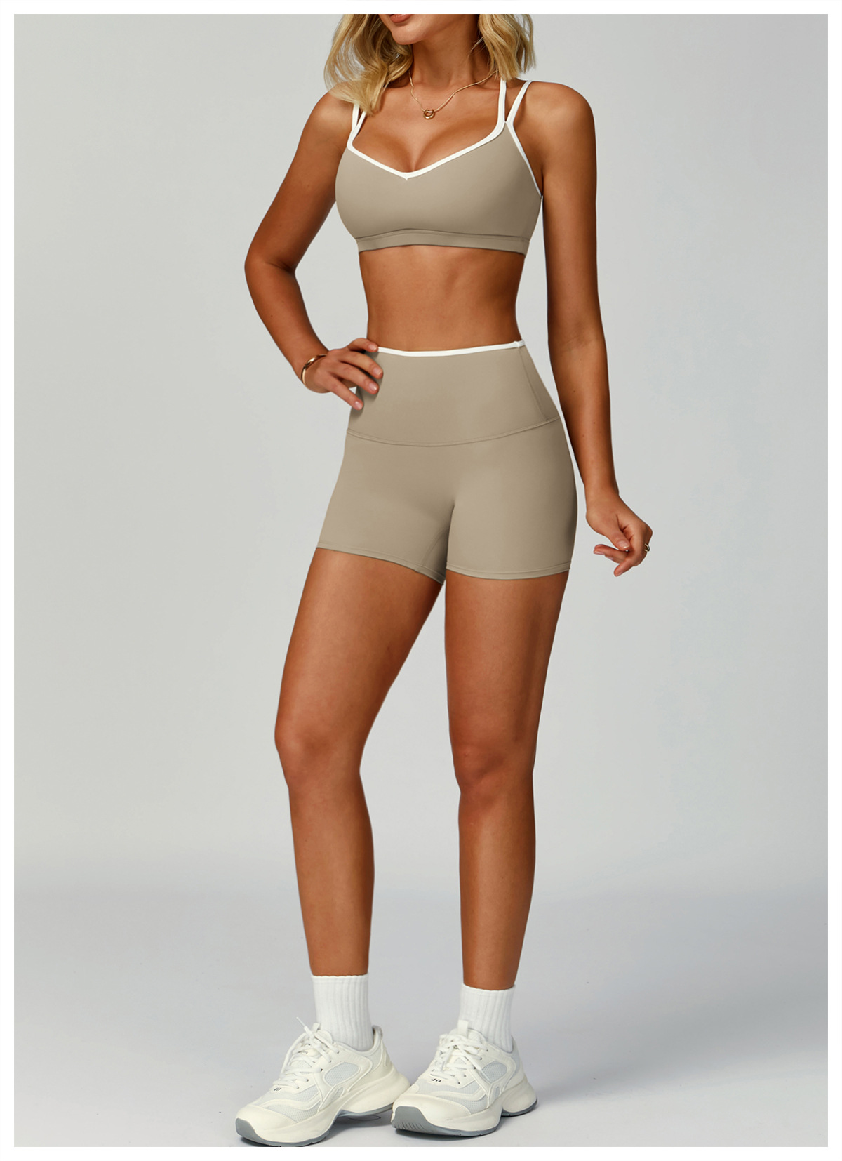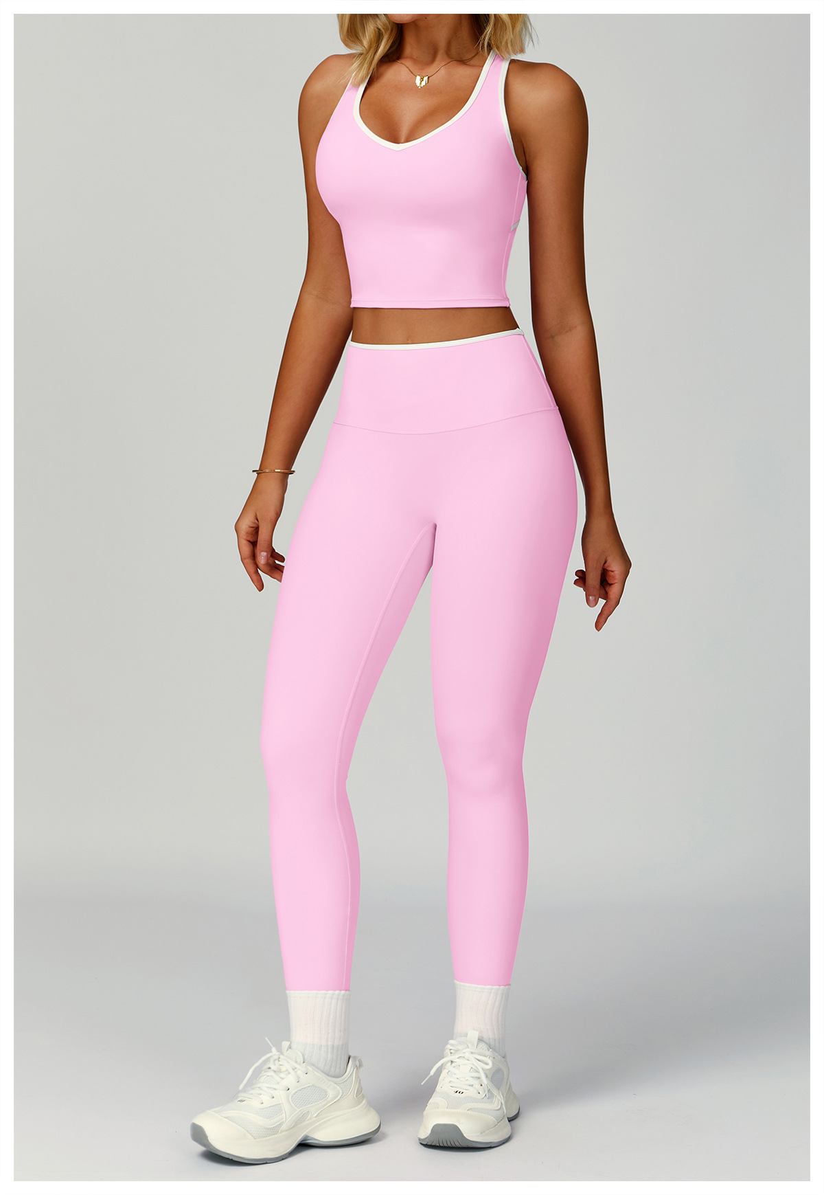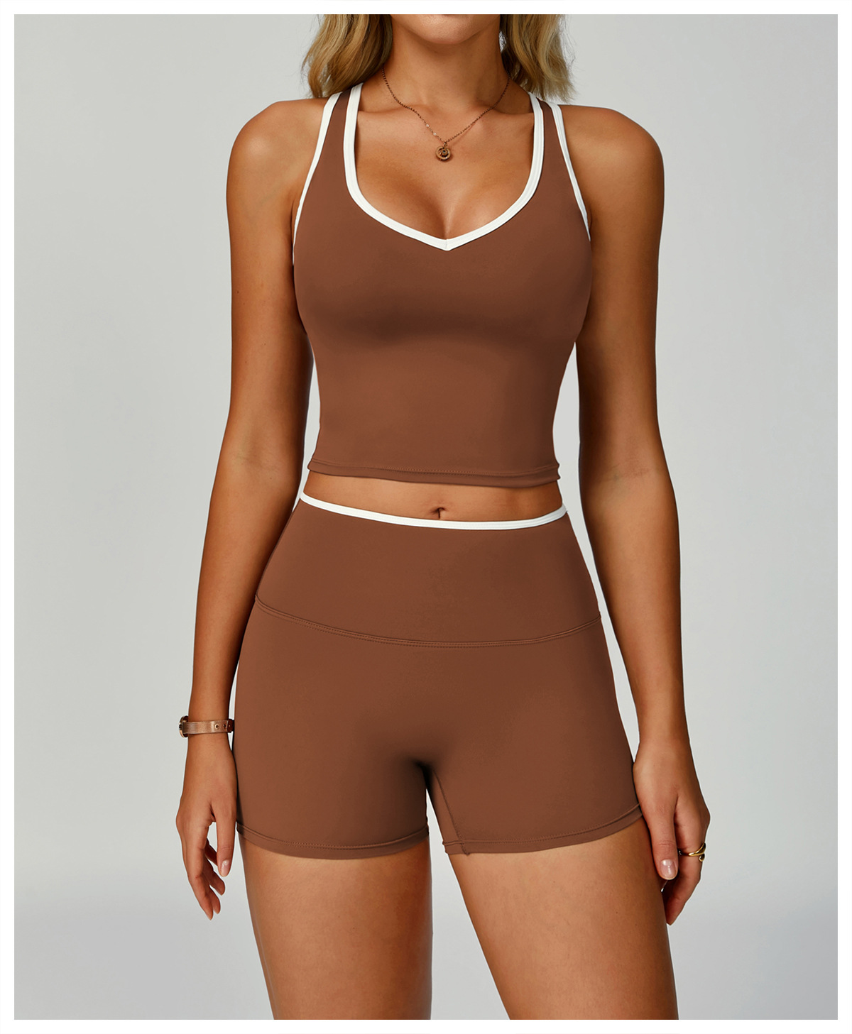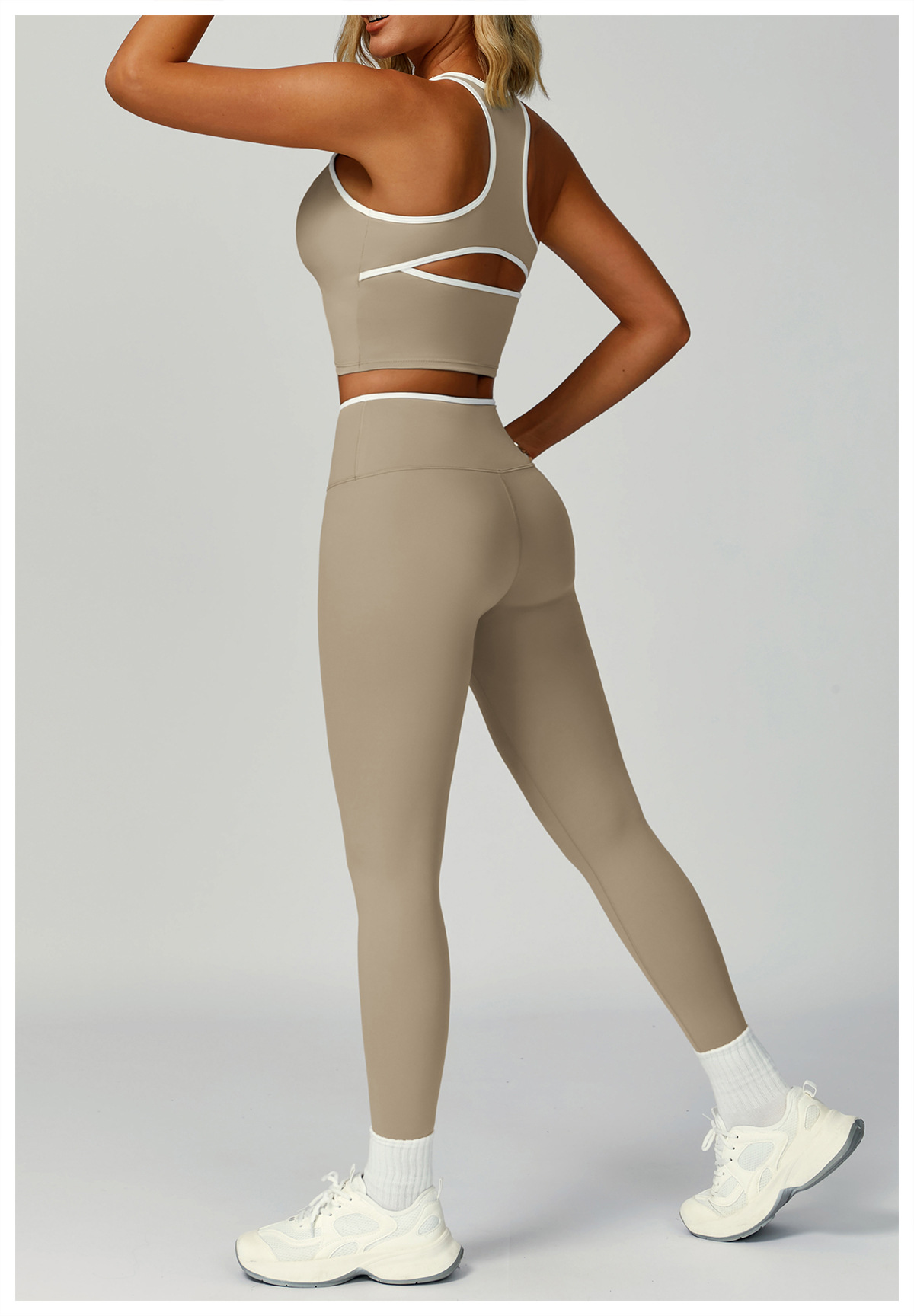 Zechuang 대비 색 가장자리 스포츠 정장 여성의 꽉 끼는 아름다운 등 누드 요가 착용 스포츠 야외 피트니스 정장 9238스토어 가기