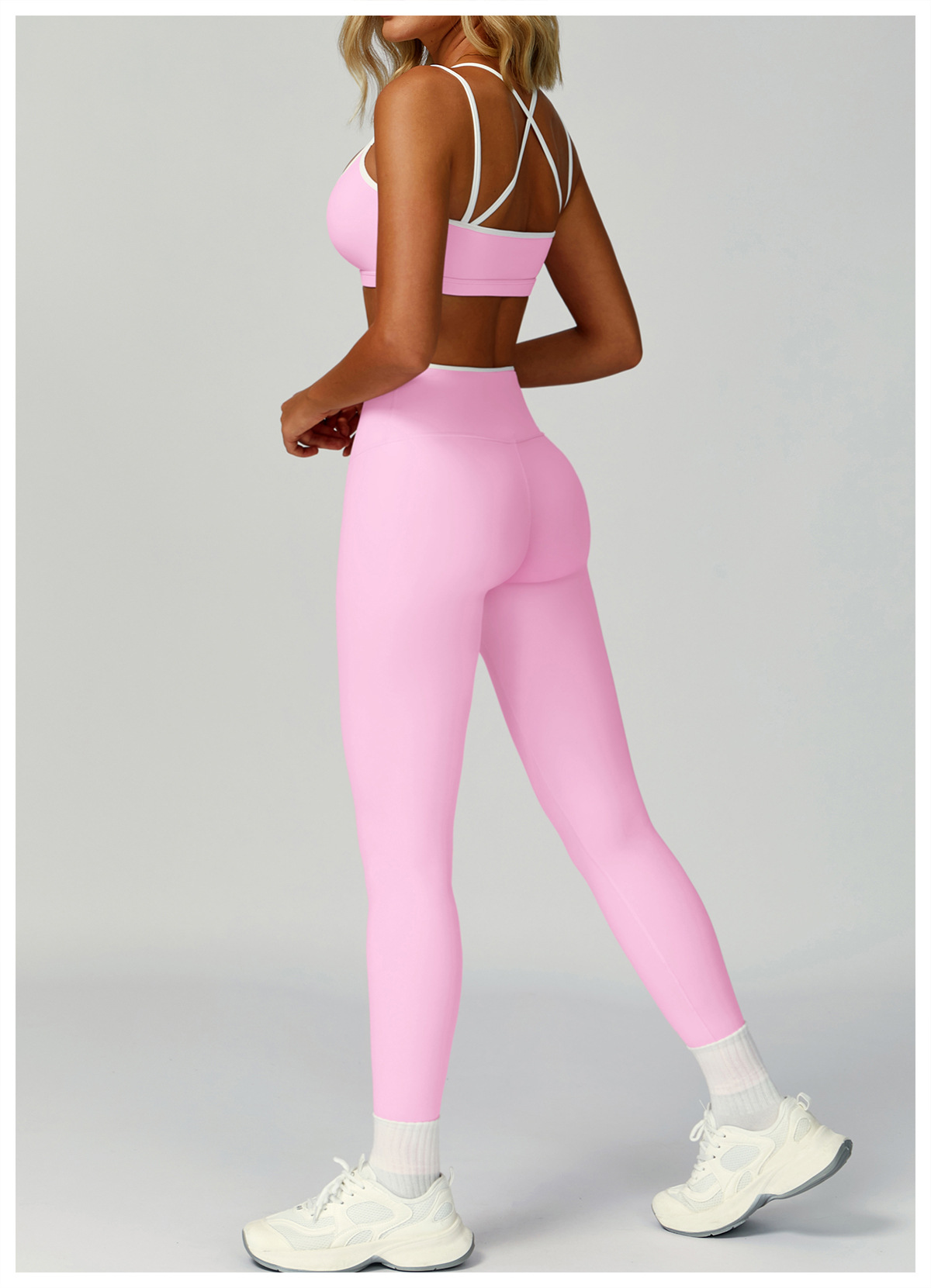 Zechuang 대비 색 가장자리 스포츠 정장 여성의 꽉 끼는 아름다운 등 누드 요가 착용 스포츠 야외 피트니스 정장 9238