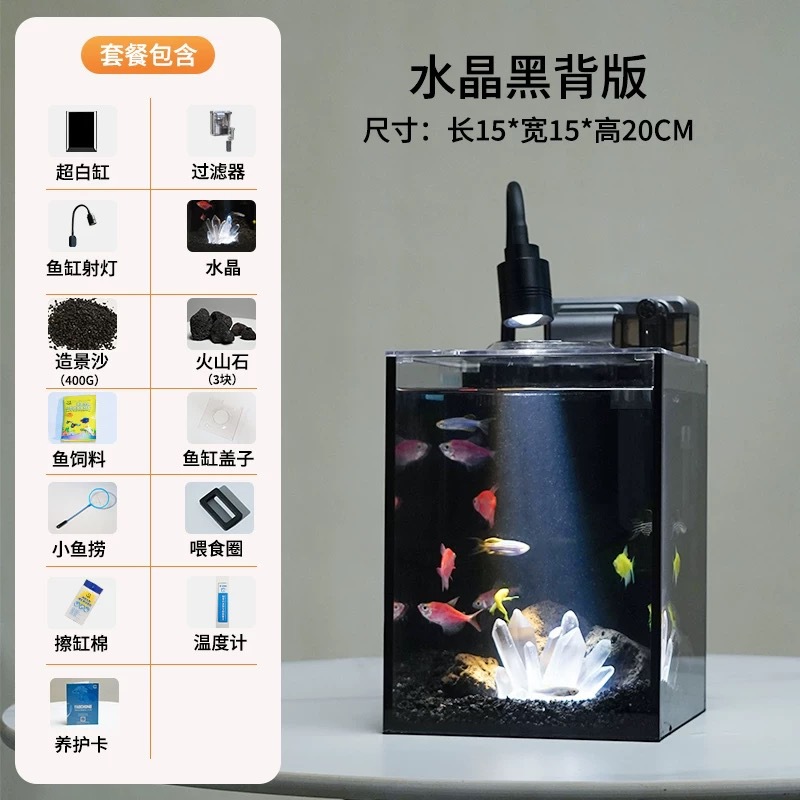 수족관 용품 창의적인 다크 스타일 풀세트 어항 장식 소형 탁상 거실용 가정용 초백유리 어항