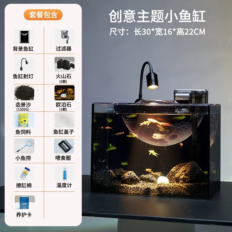 수족관 용품 창의적인 다크 스타일 풀세트 어항 장식 소형 탁상 거실용 가정용 초백유리 어항스토어 가기