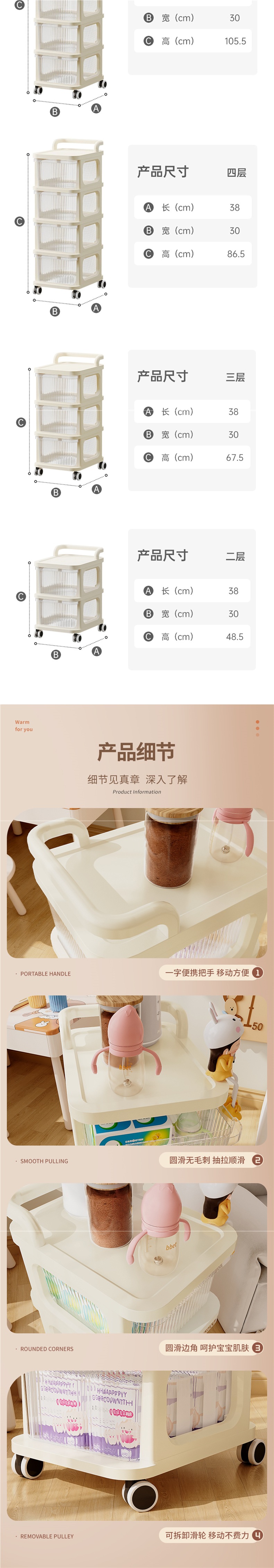 유모차 스낵 보관함 아기 용품 보관 캐비닛 바닥에서 이동식 아기 장난감 보관함 크림 스타일