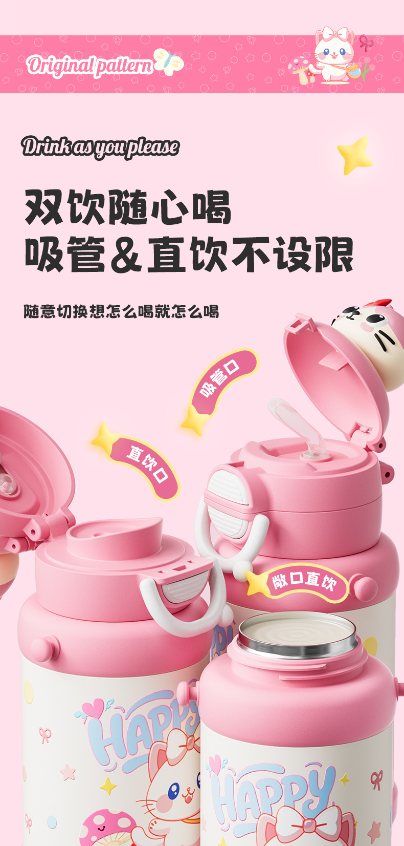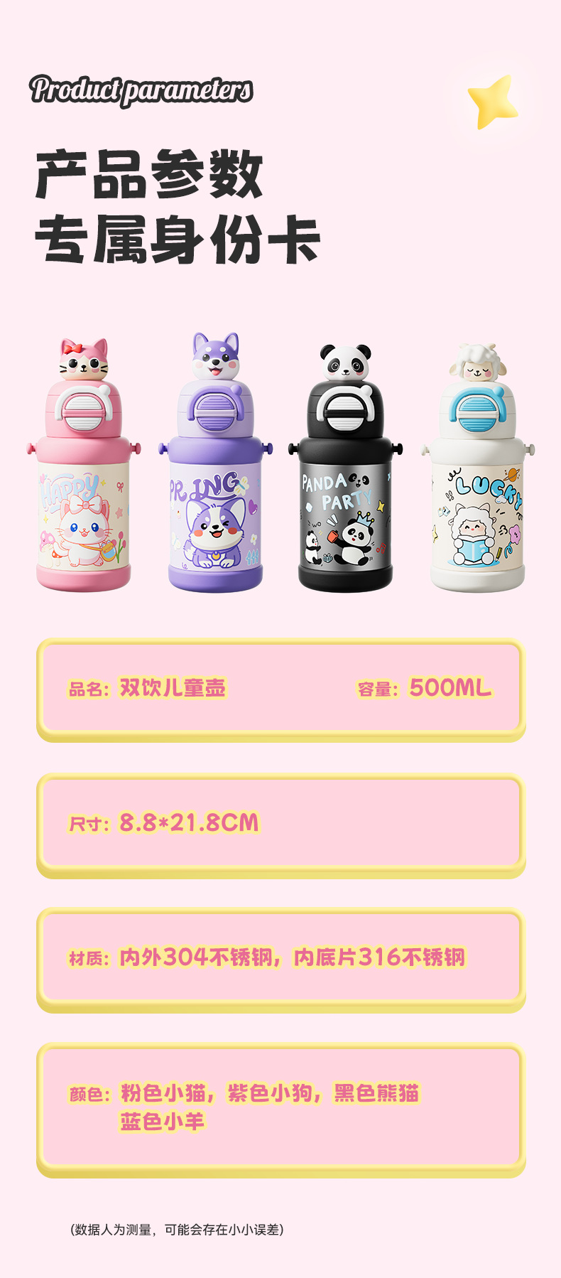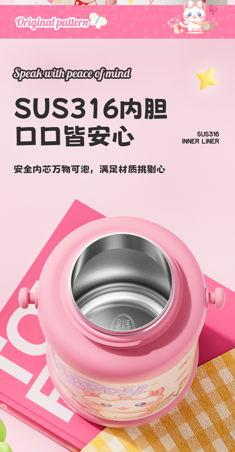 대용량 휴대용 만화 316 물 컵 두꺼운 학교 가정용 주전자 어린이와 소녀 스테인레스 스틸 보온병 컵스토어 가기