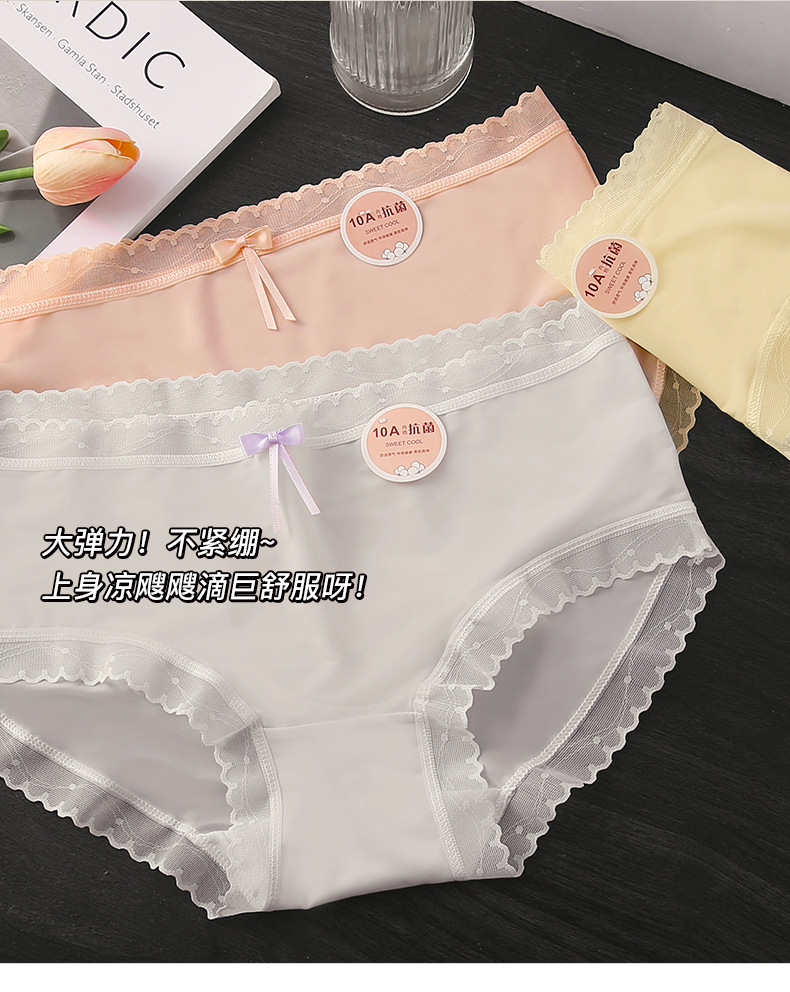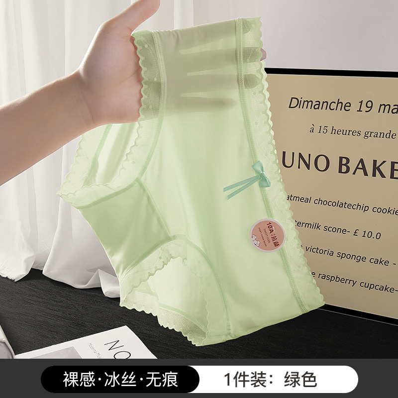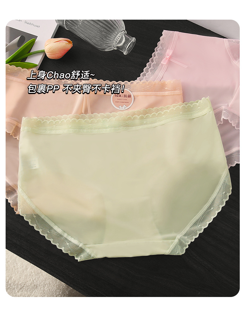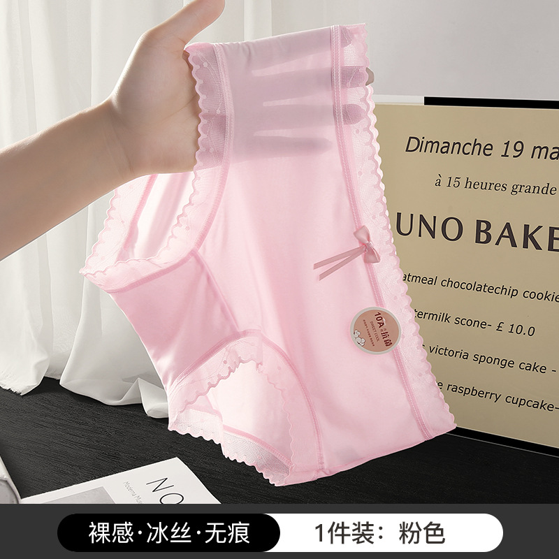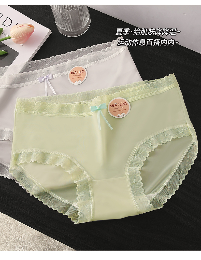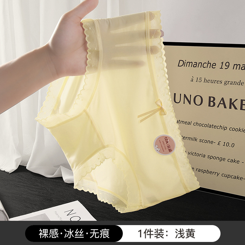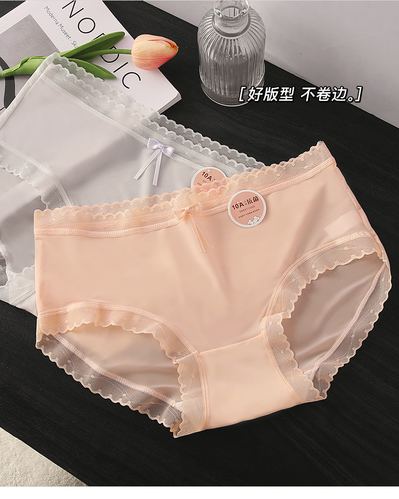 아이스 실크 소녀 속옷 여성용 10A 항균 코튼 바닥 가랑이 누드 통기성 소녀 섹시한 중간 허리 삼각형 반바지