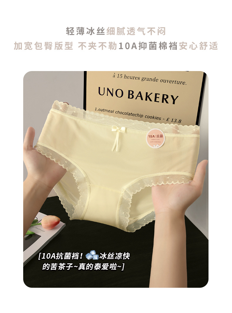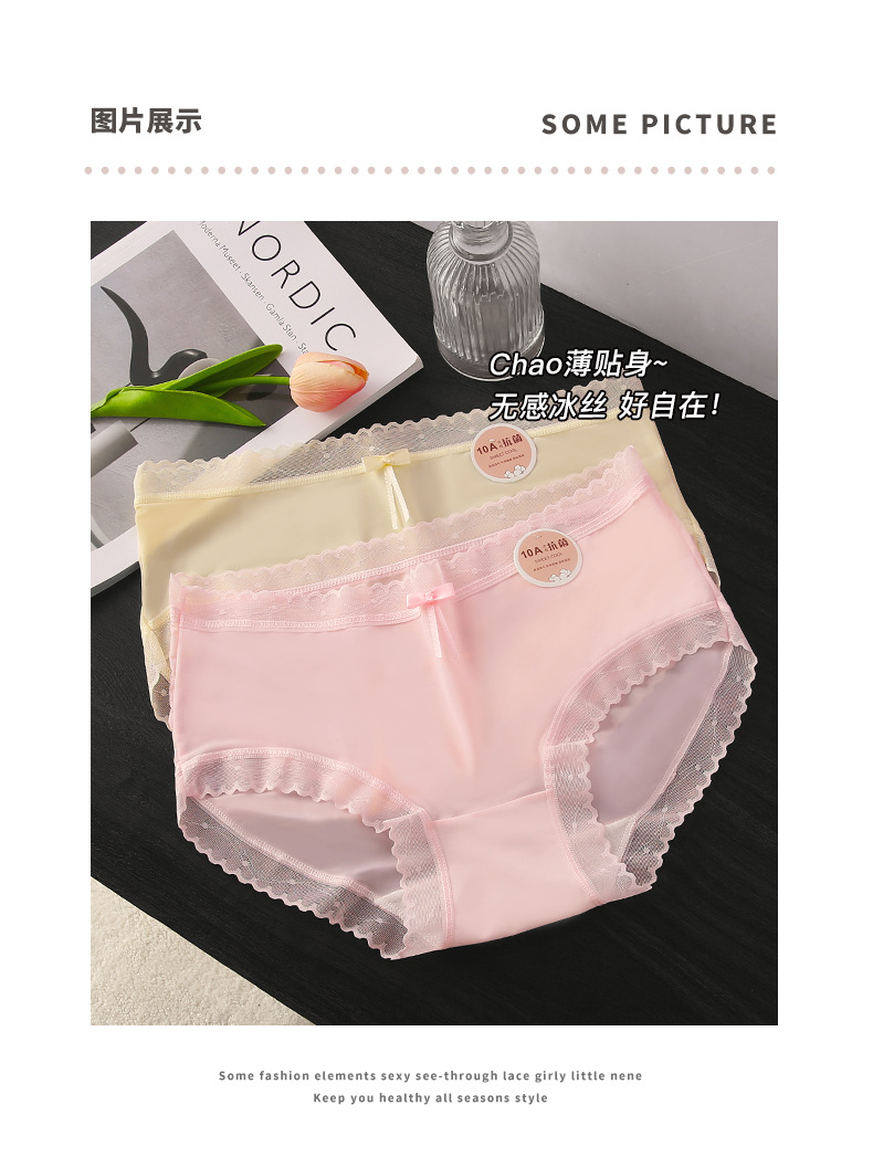 아이스 실크 소녀 속옷 여성용 10A 항균 코튼 바닥 가랑이 누드 통기성 소녀 섹시한 중간 허리 삼각형 반바지스토어 가기