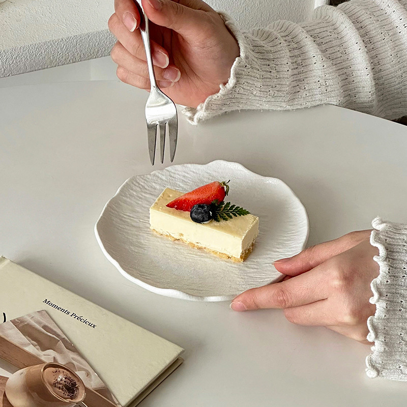 • 스톤 패턴 케이크 접시 - 샌드 화이트
