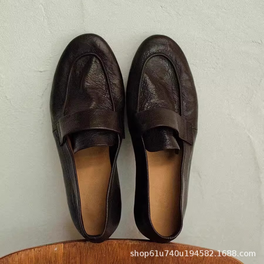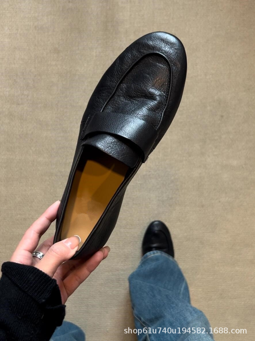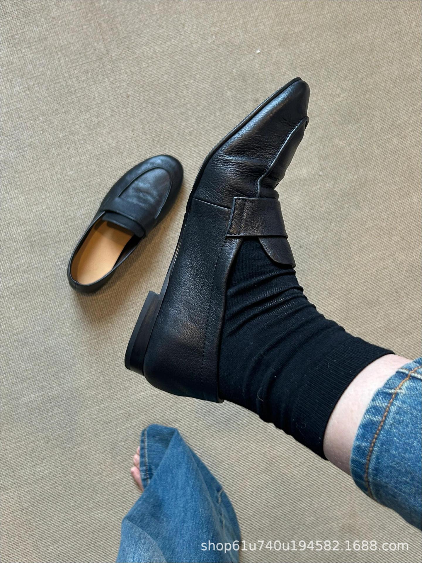 슈퍼 소프트 정품 가죽 슬립 온 게으른 뾰족한 로퍼 2025 여성을위한 새로운 프랑스 복고풍 통근 플랫 슈즈스토어 가기