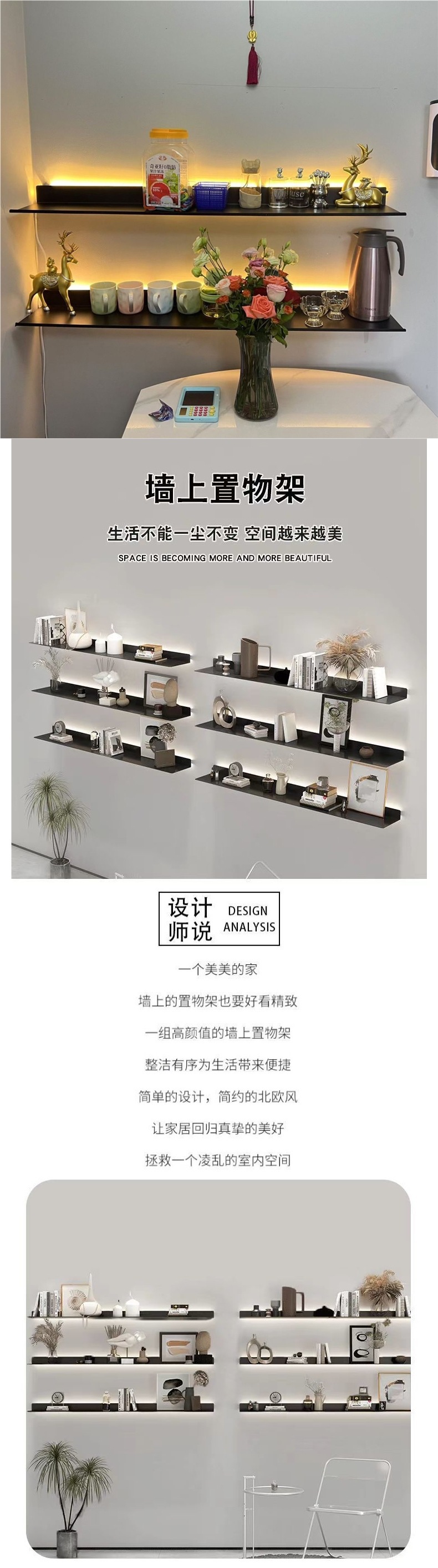 발광선반 디스플레이선반 거실 현관 간이벽걸이 책장 일자형 선반 벽선반 수납선반