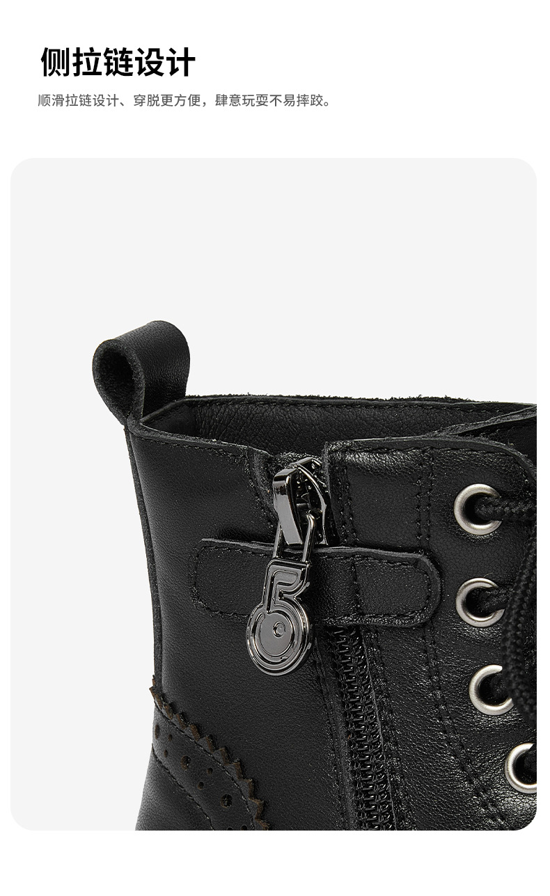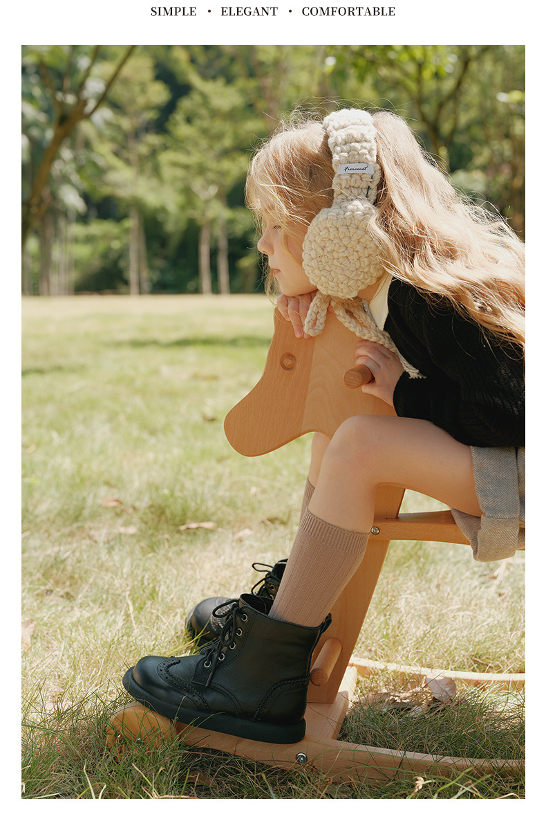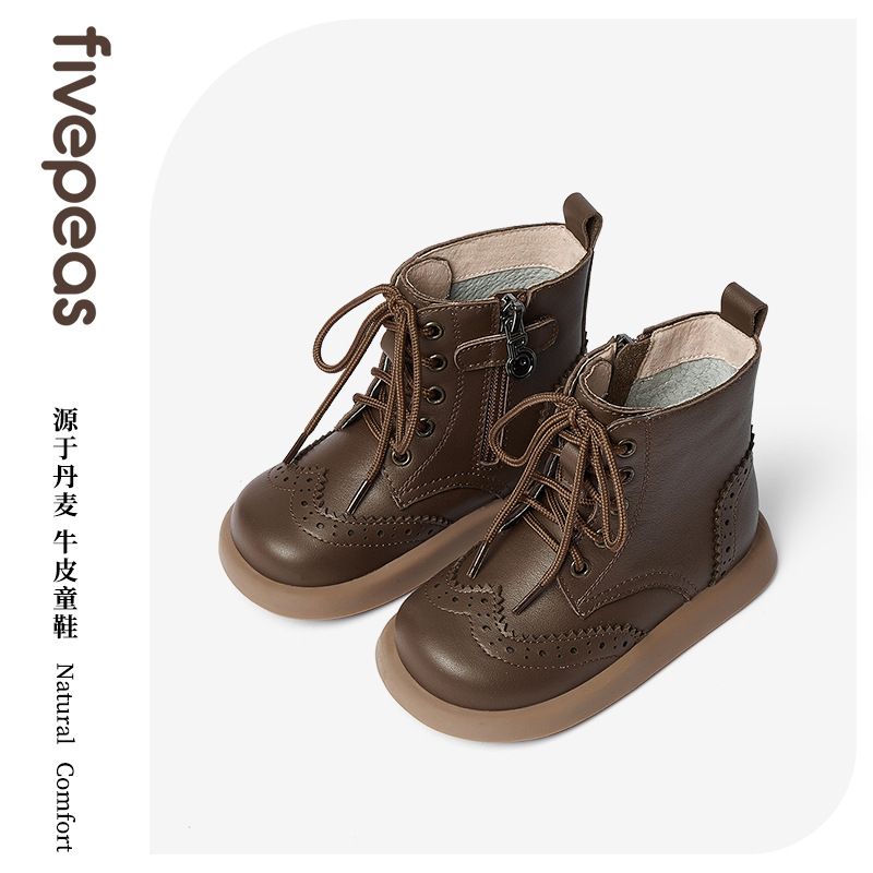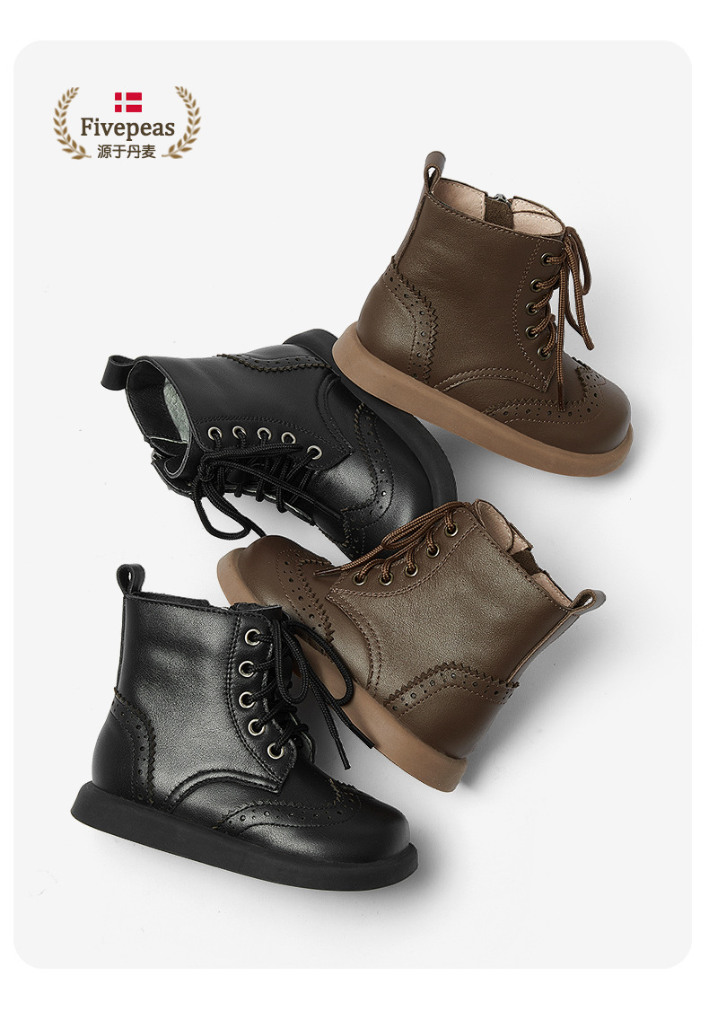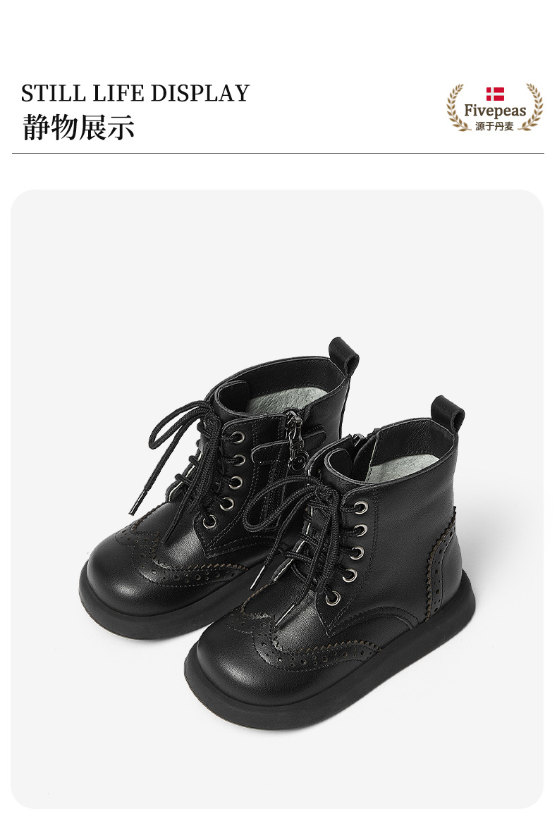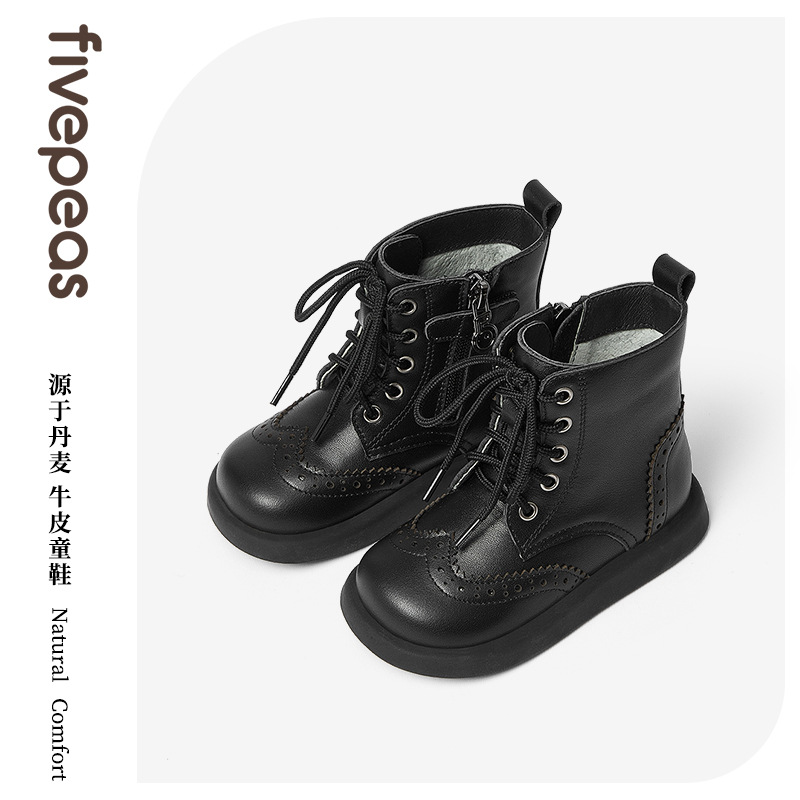 Five Beans 아동용 부츠 겨울 새 여아 짧은 부츠 정품 가죽 마틴 부츠 소년 대학 영국 가죽 부츠 미끄럼 방지스토어 가기