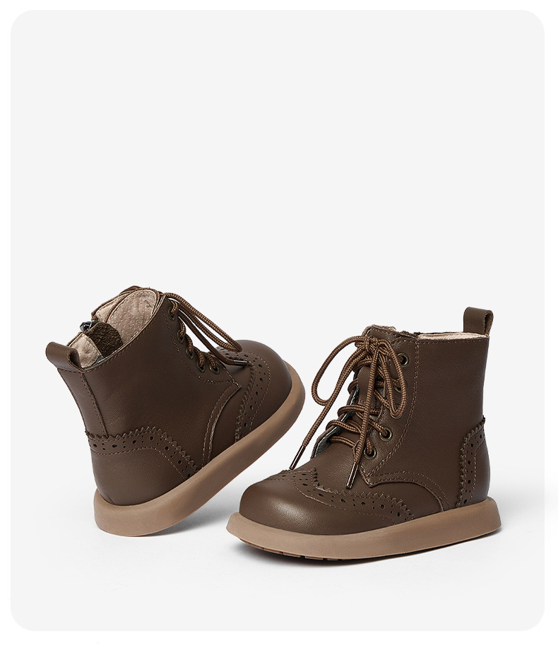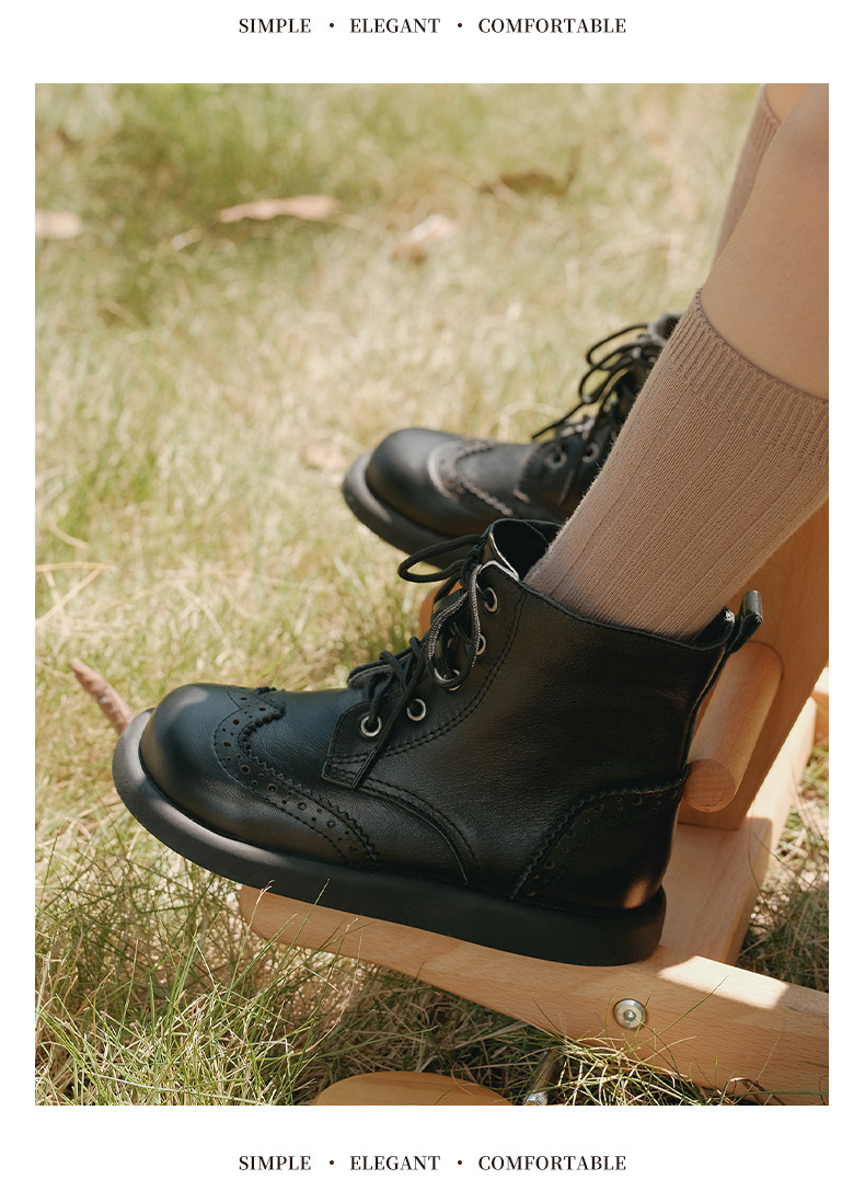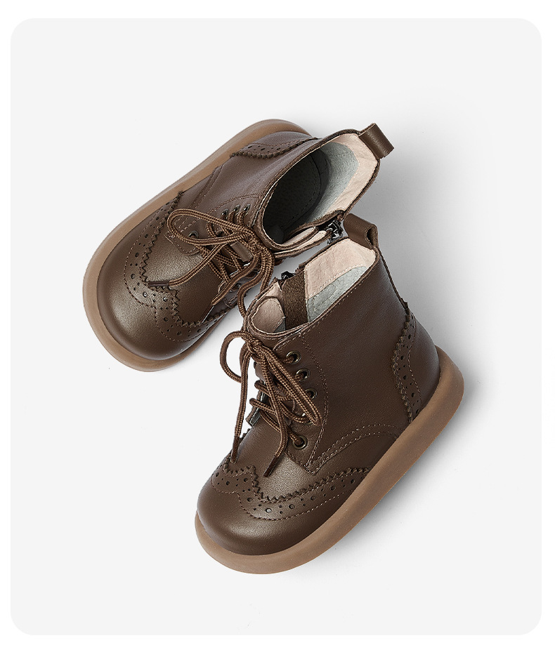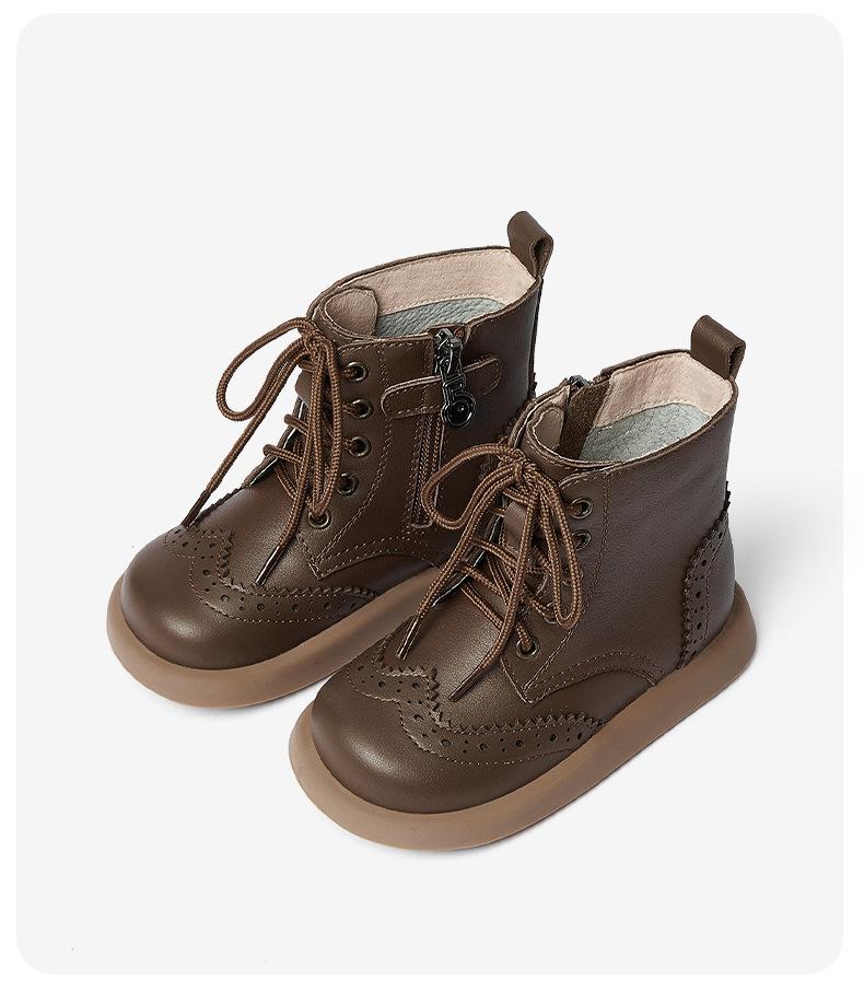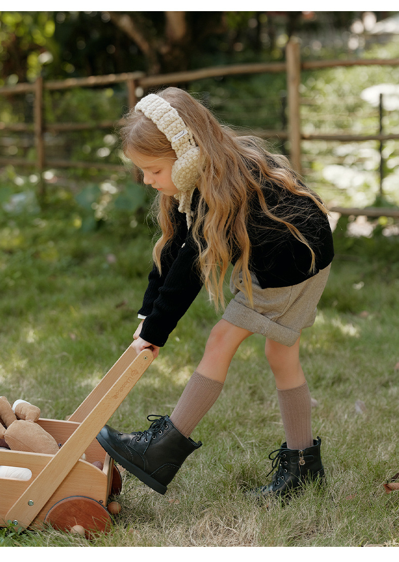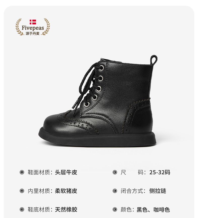 Five Beans 아동용 부츠 겨울 새 여아 짧은 부츠 정품 가죽 마틴 부츠 소년 대학 영국 가죽 부츠 미끄럼 방지스토어 가기