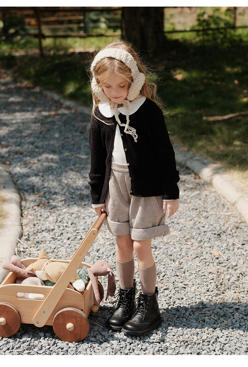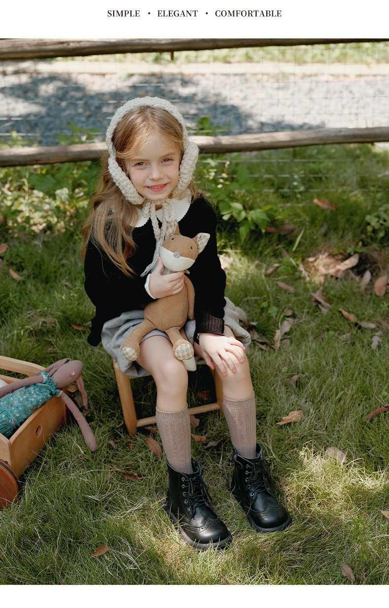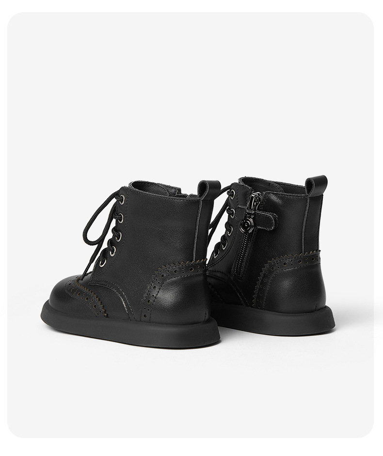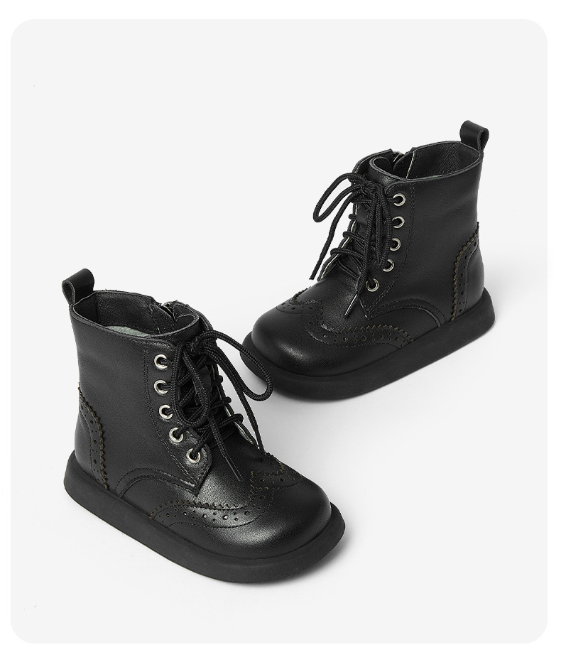 Five Beans 아동용 부츠 겨울 새 여아 짧은 부츠 정품 가죽 마틴 부츠 소년 대학 영국 가죽 부츠 미끄럼 방지
