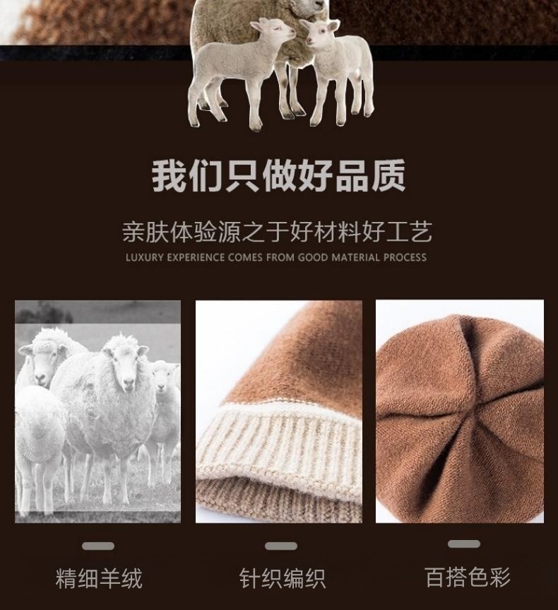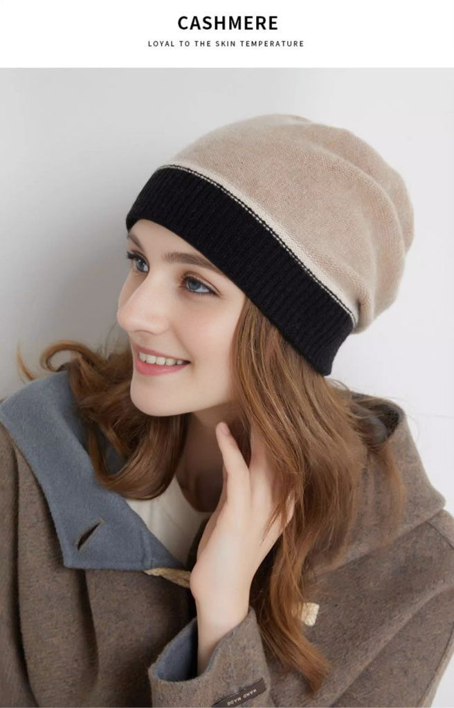 유럽과 미국 여성의 새로운 캐시미어 울 귀 보호 헤드기어 푸시업 모자 가을 겨울 따뜻한 대비 색상 니트 모자