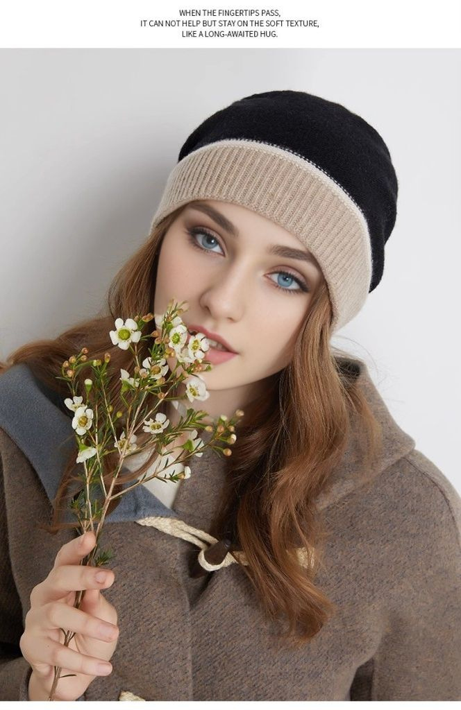 유럽과 미국 여성의 새로운 캐시미어 울 귀 보호 헤드기어 푸시업 모자 가을 겨울 따뜻한 대비 색상 니트 모자스토어 가기