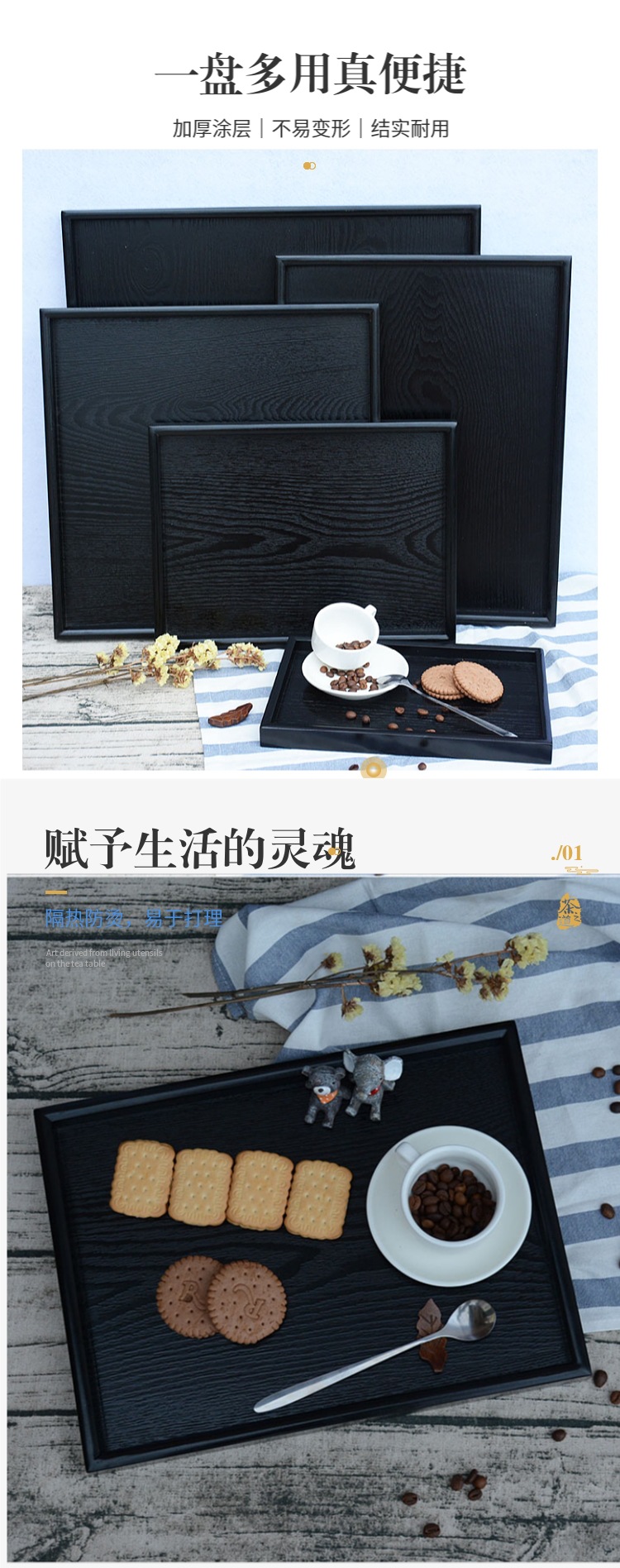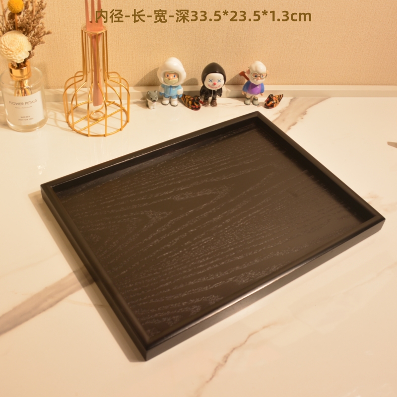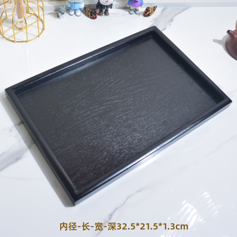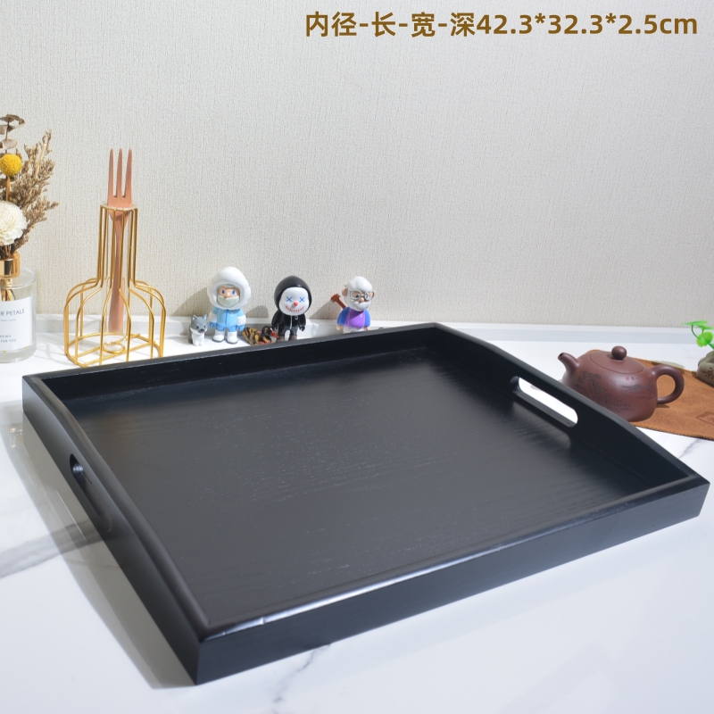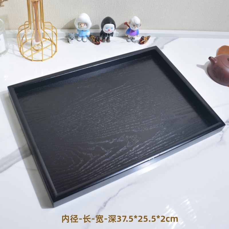 일본식 검은 나무 트레이 직사각형 대형 단단한 나무 접시 저녁 식사 접시 서빙 접시 워터 컵 트레이 차 트레이 복고풍스토어 가기
