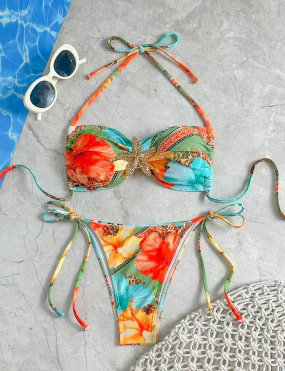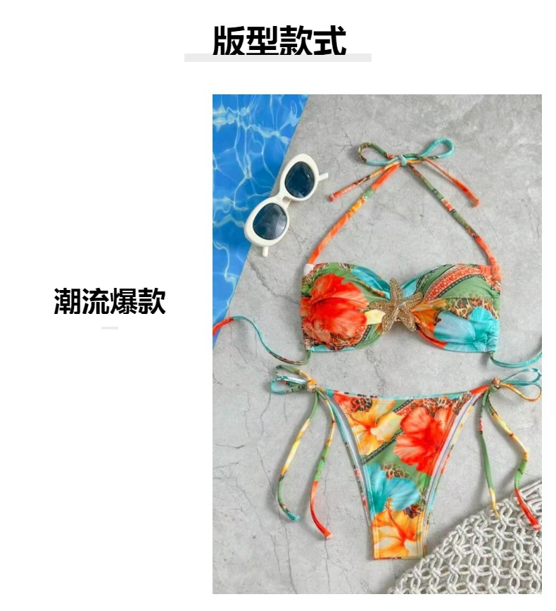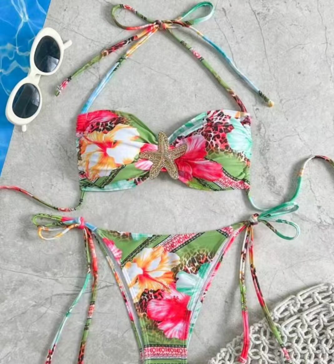 2025 유럽 및 미국 해외 무역 알리익스프레스 프린트 레이스업 섹시 하이웨이스트 비키니 수영복 여성 스포츠 스타일